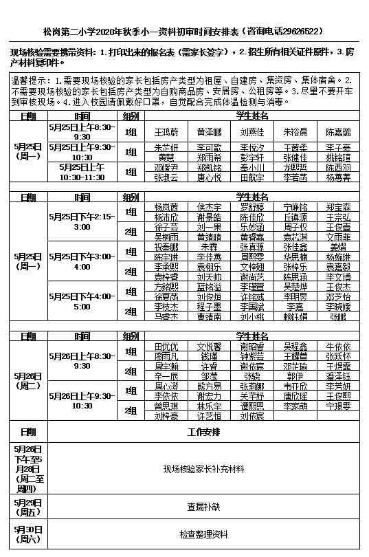 您好!5月25日-5月30日是2020年秋季小一新生入学报名信息初核的时间,为缩短家长等候时间,现将有关事宜提示如下: