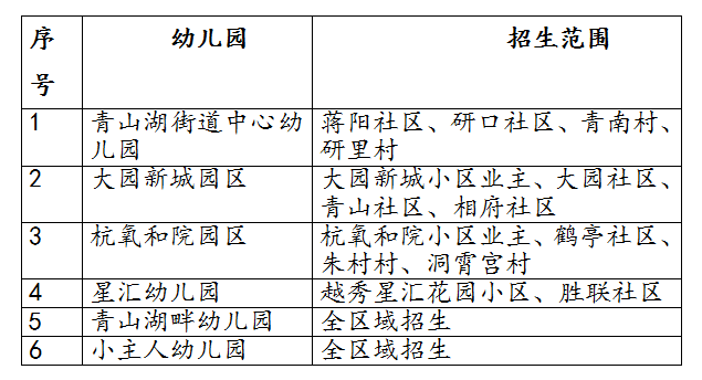 青山湖街道大园社区、青山社区(科技大道以南)、相府社区户籍适龄幼儿。