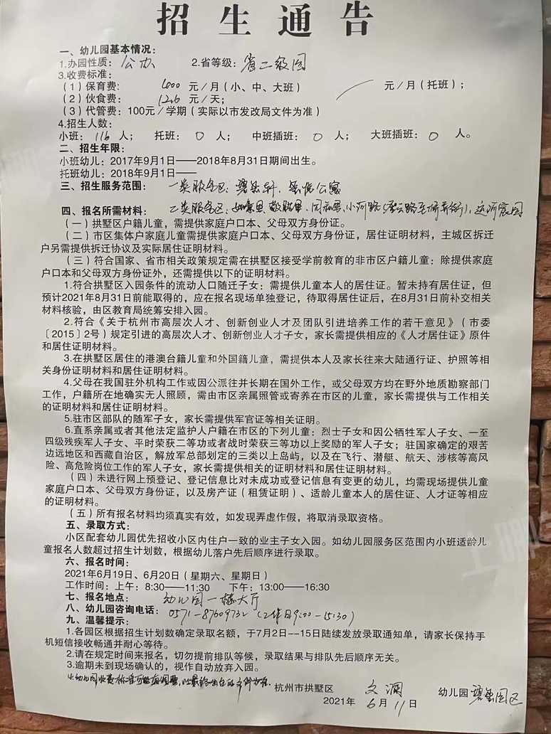 2.各园区根据招生计划数确定录取名额,于6月20日前陆续发放录取通知单,请家长保持手机短信接收畅通并耐心等待。