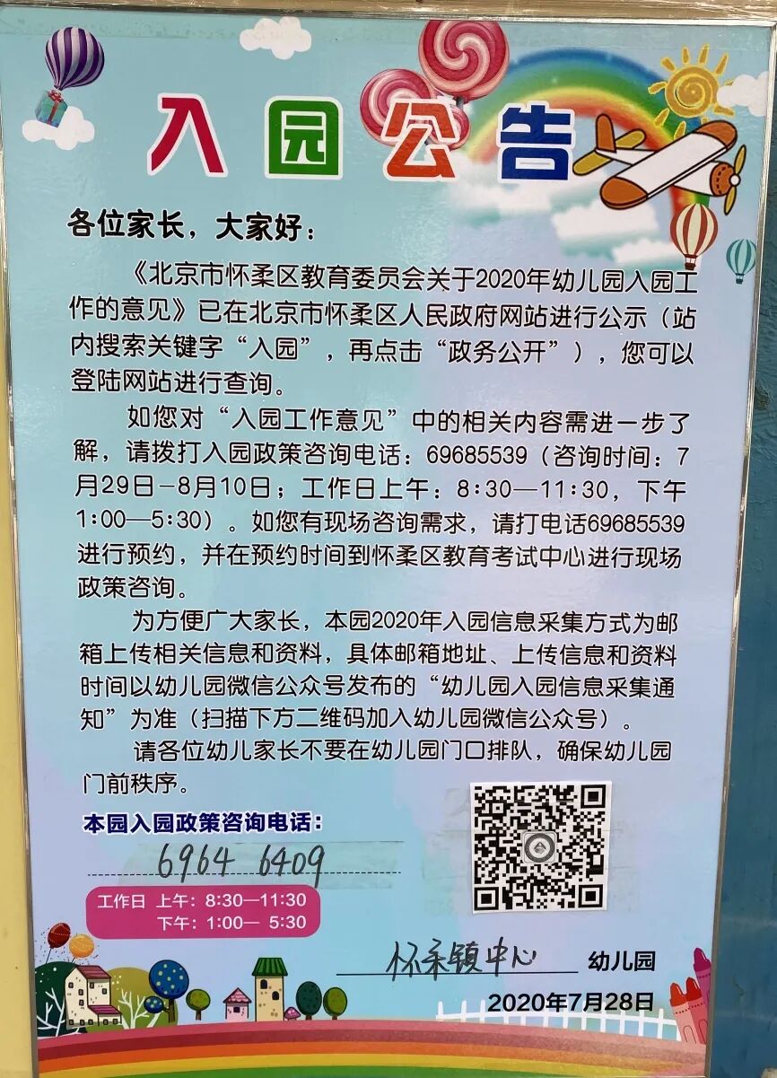 (三)各幼儿园要严格执行《北京市怀柔区教育委员会关于2020年幼儿园入园工作的意见》,制定本园入园工作实施方案,在明显位置张贴幼儿园入园公告,公示入园相关内容及要求。