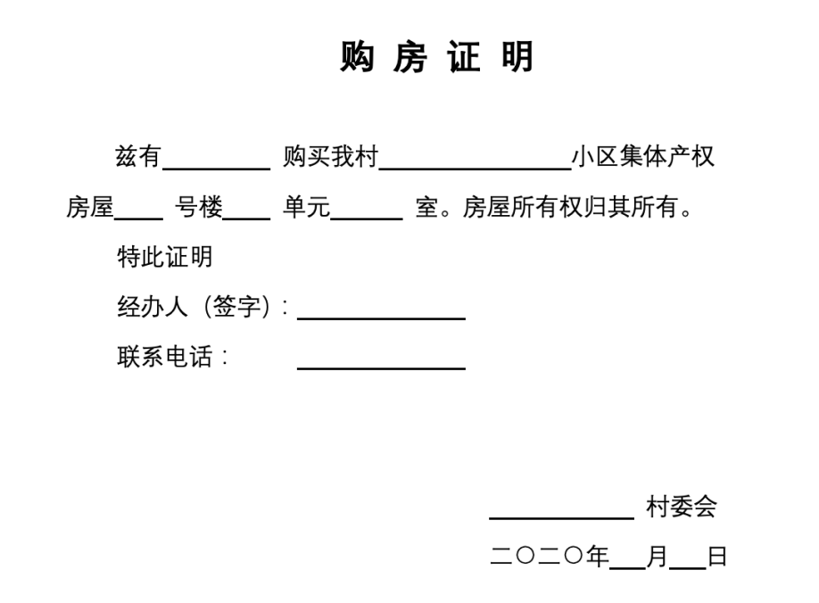 附:京籍小产权房购房证明模板