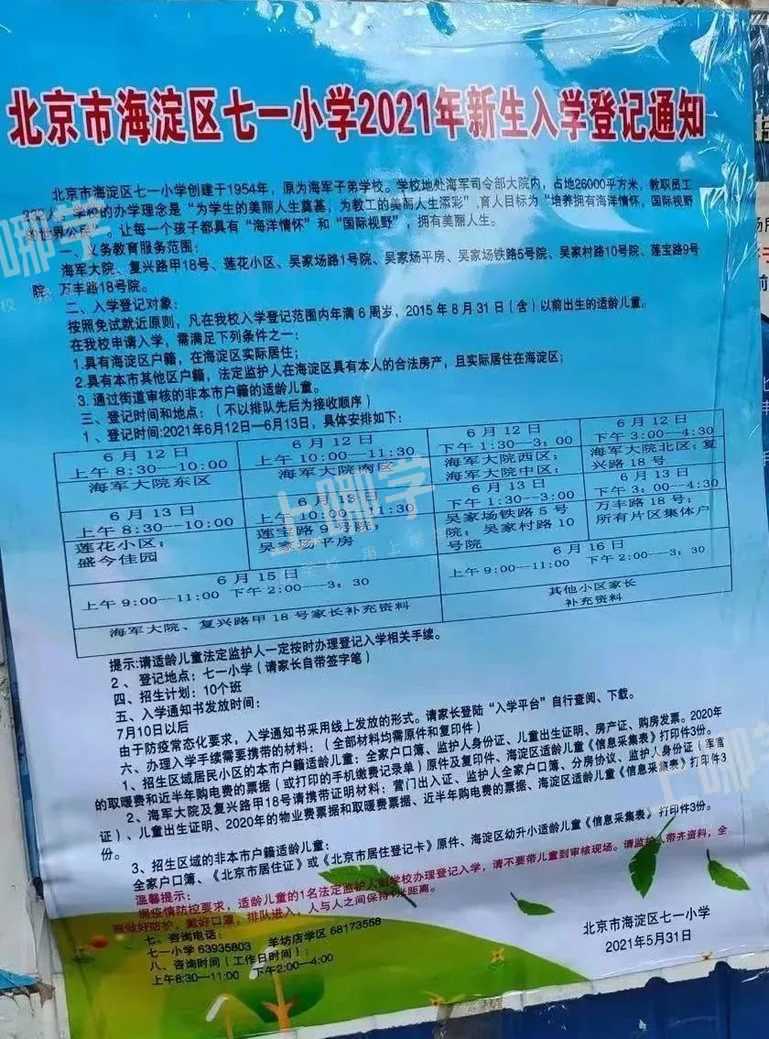 北京市海淀区七一小学于1954年建校,地处海军司令部大院内,占地两万六千多平方米,原为海军干部子弟学校,现为海淀教委所属的公有制办学体制学校。