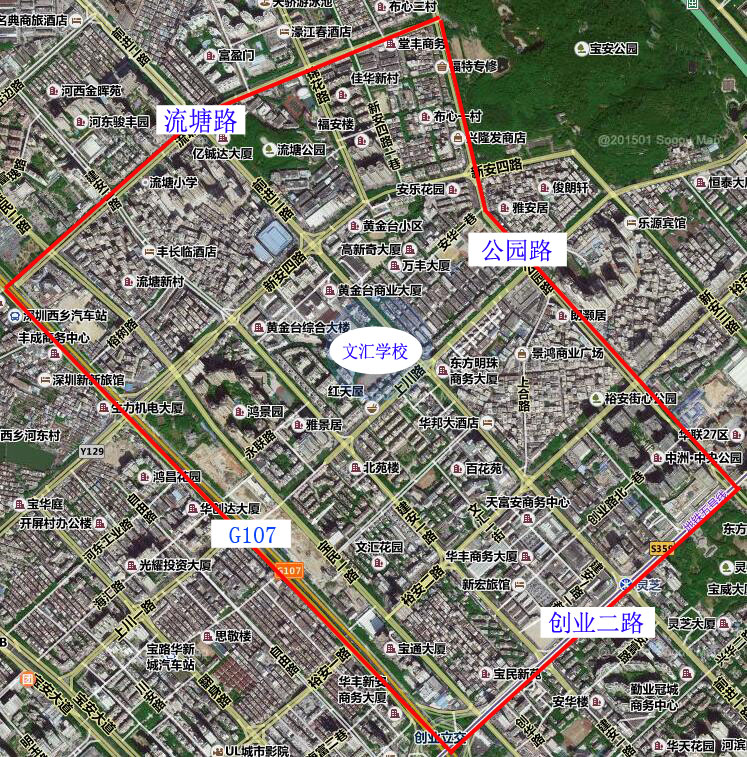 107国道以东,创业二路以北,公园路以西,流塘路以南区域。