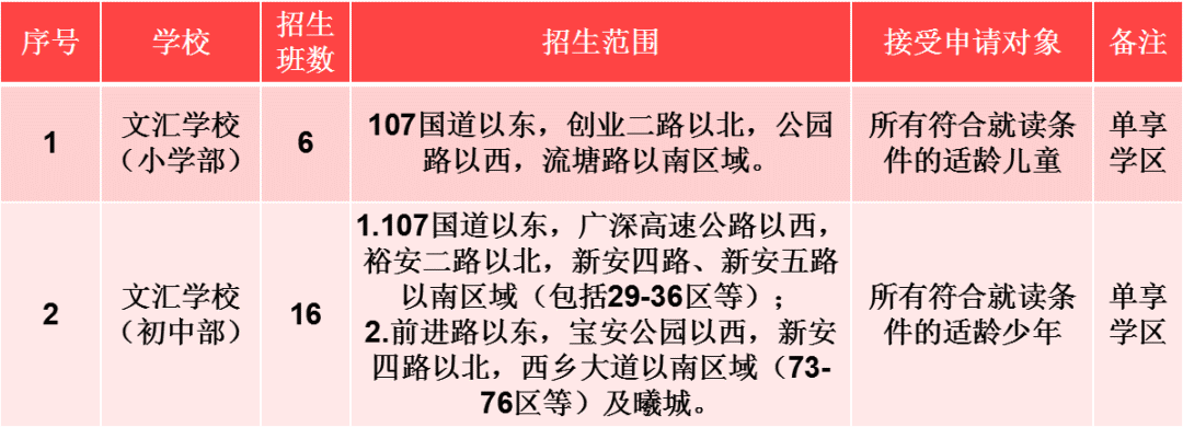 1.宝安区2022年秋季义务教育公办学校招生计划及招生范围