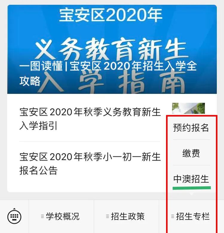 2、为方便及时沟通和后期跟进,请报读中澳的家长在教育局报名系统报名后,同时在学校微信公众号“中澳招生”小程序中提交信息,填写信息的过程中准确选择就读的学部和课程。