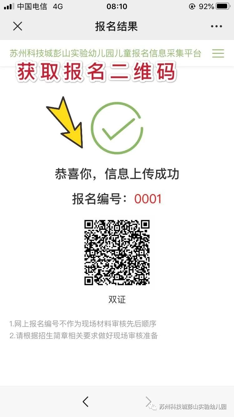 1.网上报名编号不作为现场材料审核先后顺序,请留存好此二维码,现场审核备用。