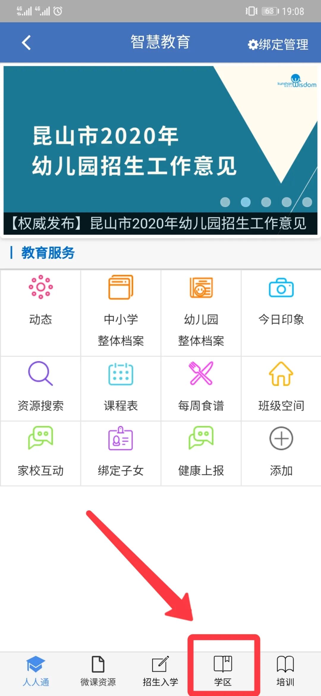 屏幕下方点击学区