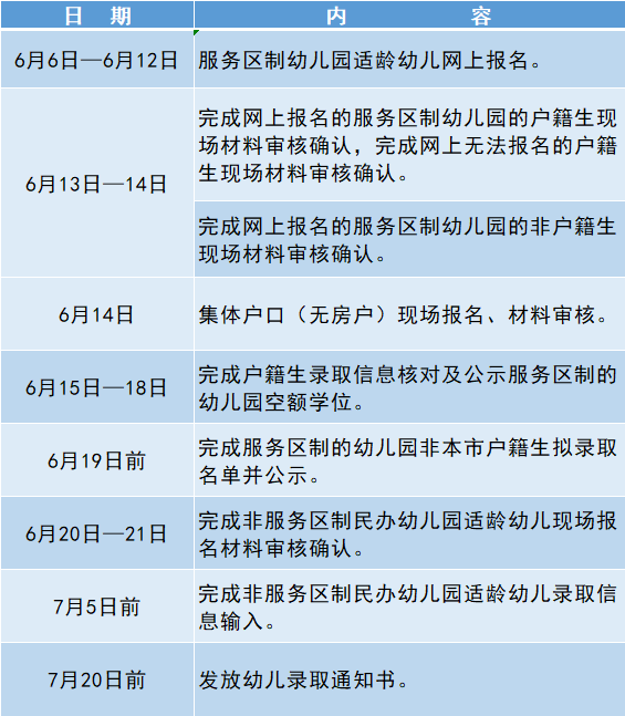 昆山市2020年幼儿园入园工作日程安排