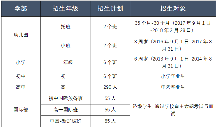 备注:各年级招收少量优秀插班生