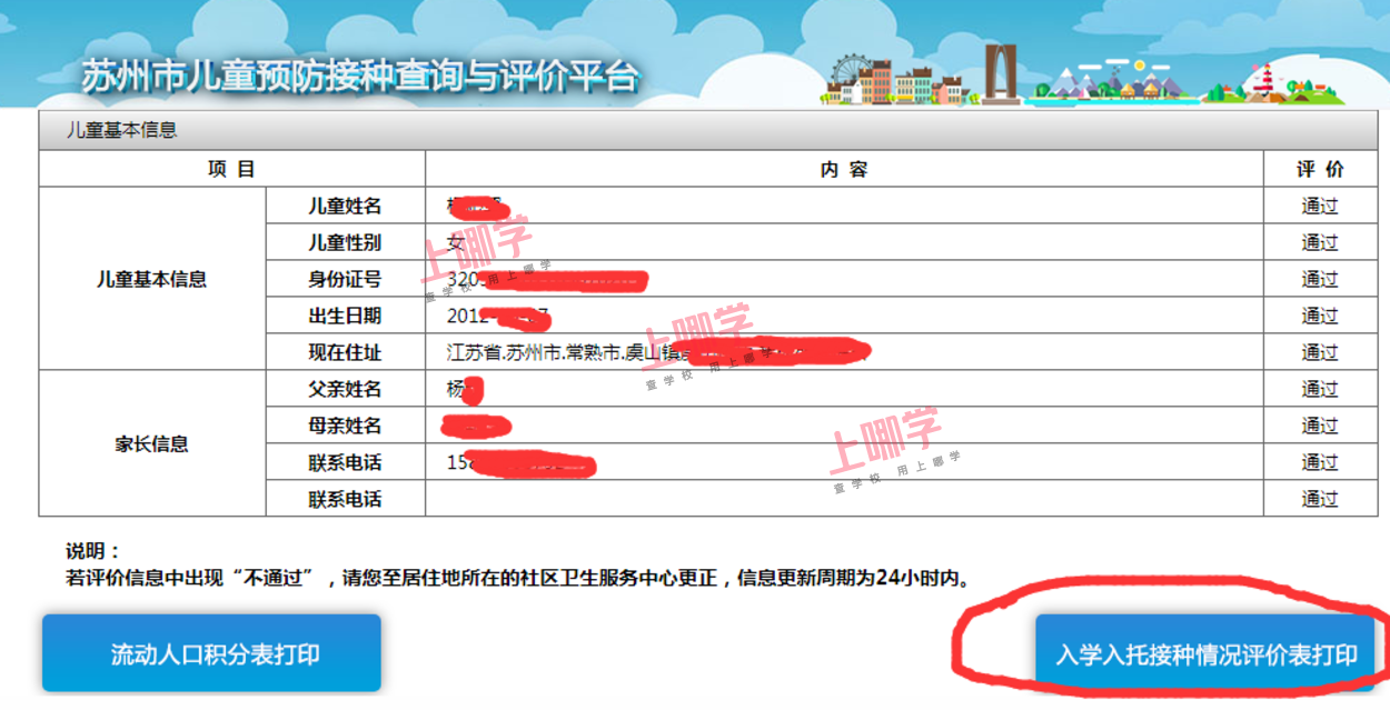 3.点击“入学入托接种情况评价表打印”,按提示完成打印。
