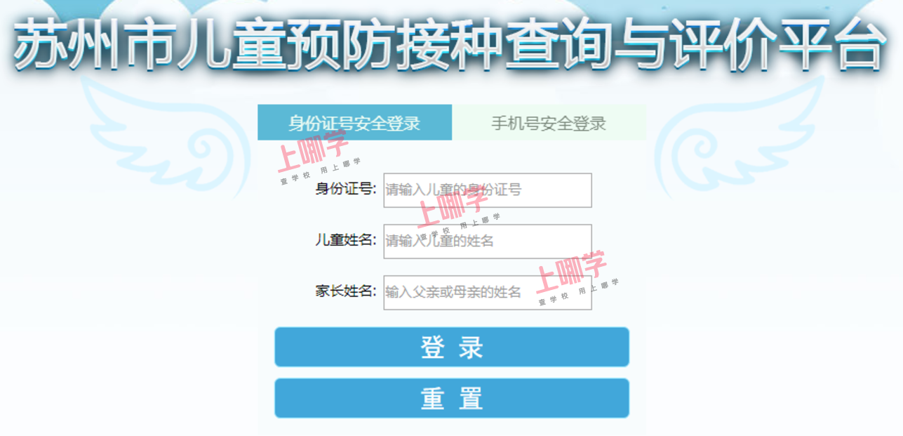 2.点击“儿童身份证安全登录”(已在苏州市儿童预防接种单位录入儿童身份证号)或手机号安全登录(已在苏州市儿童预防接种单位录入家长手机号)。