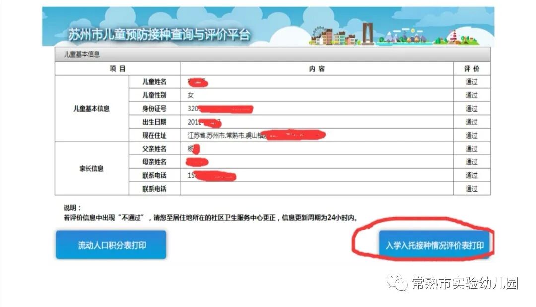(3)对于非苏州地区接种单位在册管理的儿童,需家长带好儿童预防接种证及父母身份证,至现居住地接种单位或托幼机构、学校所在地接种单位办理迁入手续后,方可打印《入托入学儿童预防接种情况评价表》。