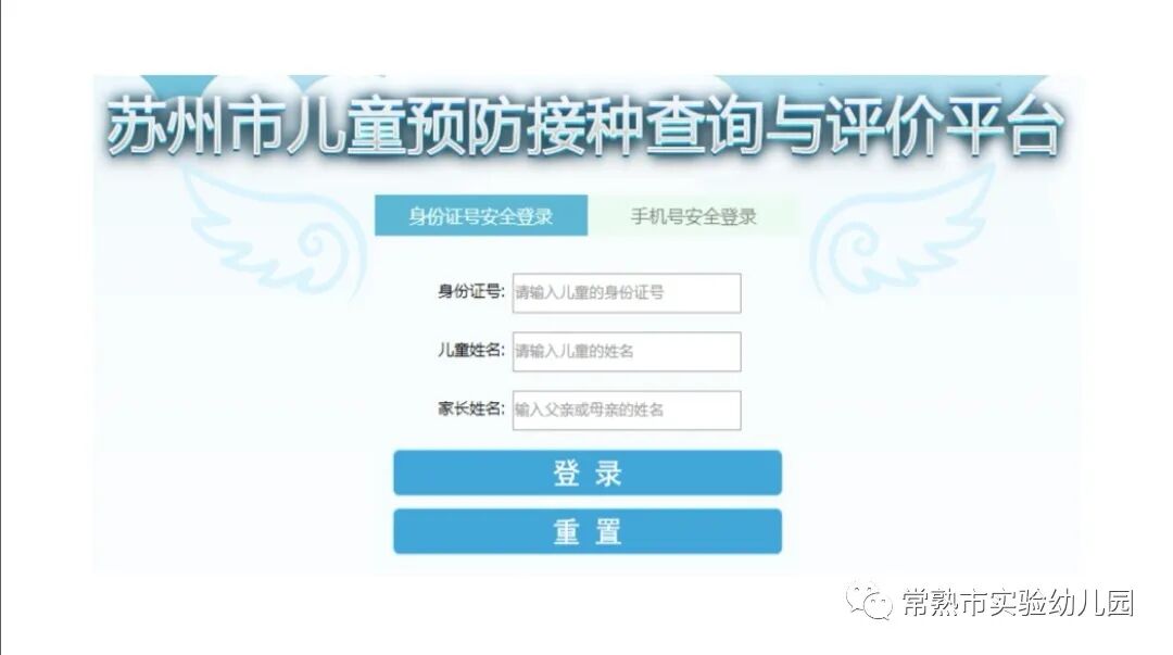 2.点击“儿童身份证安全登录”(已在苏州市儿童预防接种单位录入儿童身份证号)或手机号安全登录(已在苏州市儿童预防接种单位录入家长手机号)。