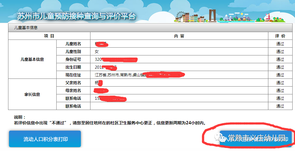 4.对于非苏州地区接种单位在册管理的儿童,需通知儿童家长带好儿童预防接种证及父母身份证,至现居住地接种单位或托幼机构、学校所在地接种单位办理迁入手续后,方可打印《入托入学儿童预防接种情况评价表》。