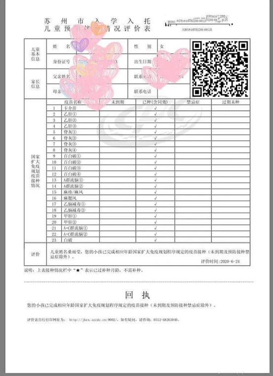 注意:对于非苏州地区接种单位在册管理的儿童,需家长带好儿童预防接种证及父母身份证,至现居住地接种单位或托幼机构、学校所在地接种单位办理迁入手续后,方可打印《苏州入学入托儿童预防接种情况评价表》。