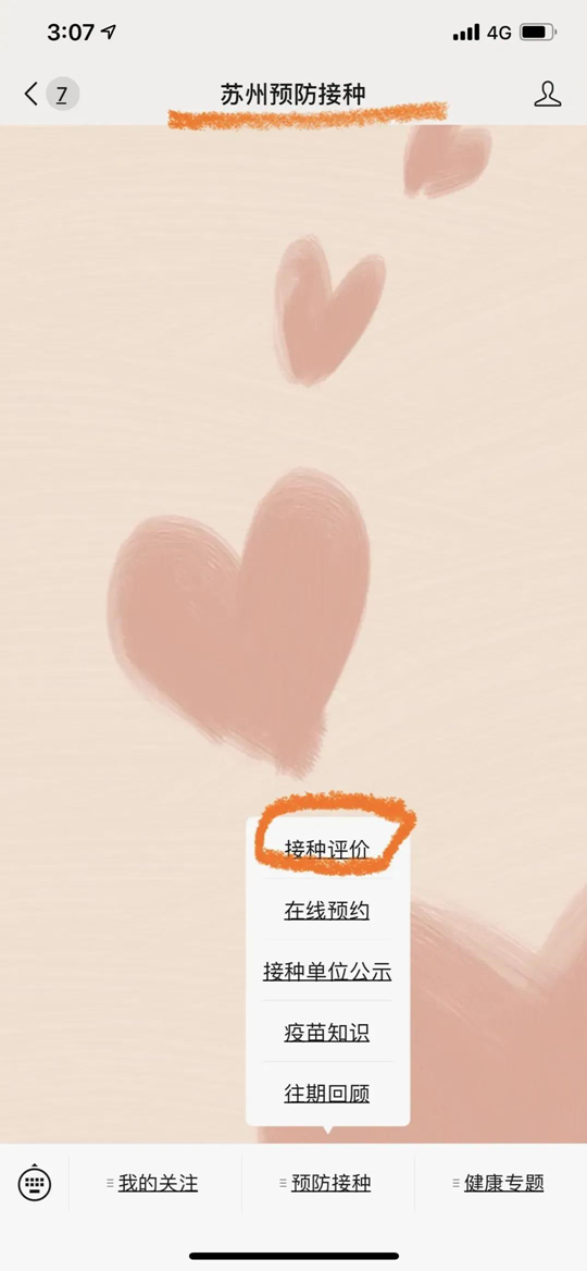 请关注“苏州预防接种”微信公众号,点击“预防接种”——“接种评价”,输入信息并登录。详情请见以下操作流程。