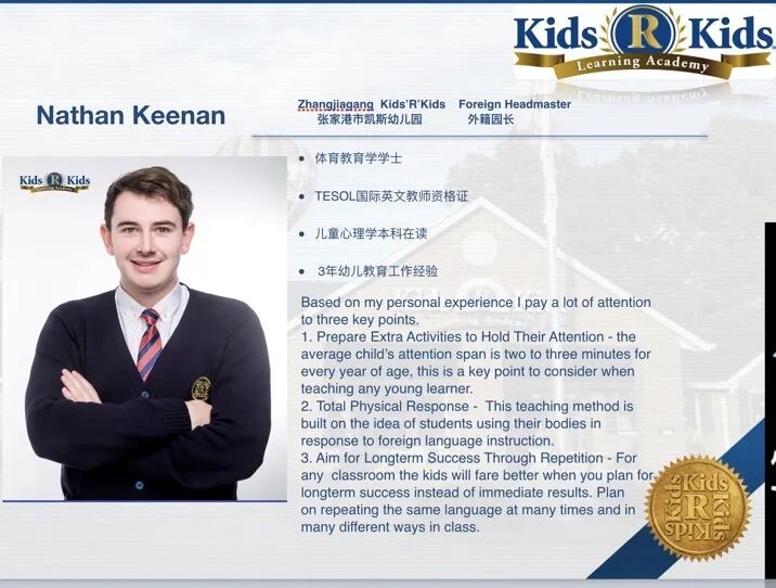 全部是英语为母语国家的外教,教育相关专业本科及以上学历,并拥有多年相关教育经验。