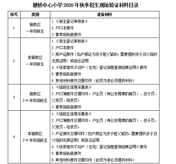 ③非老塘桥户口的学生,佐证材料为:户口本原件、《合法固定住所产权证》及《不动产查询信息结果证明》或拆迁协议、《幼儿素质报告册》;若父母户口不在一本户口本上,还需提供父母结婚证原件;三代入学的,还需提供2020年6月出具的父母及入学儿童张家港市无房证明等材料;共有入学的,还需提供2020年6月出具的父母及入学儿童张家港市无房或无全产权证明等材料。