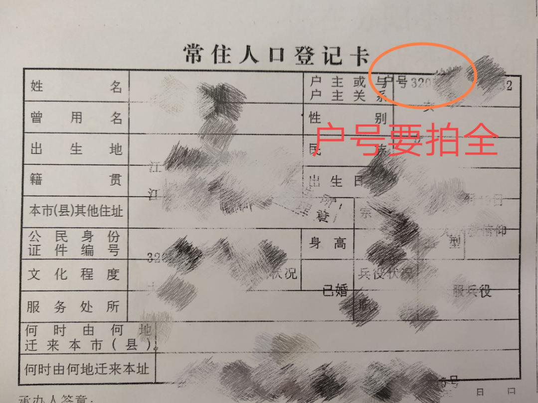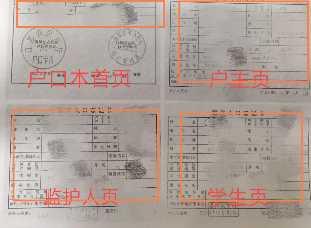 2.上传的户口本首页、户主页、儿童页、父母页的样图照片参考如下: