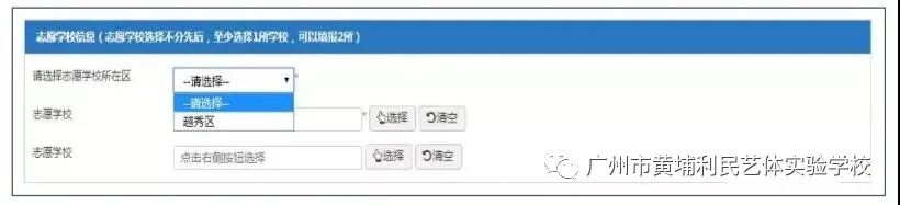 5、在网上填报志愿时,适龄儿童可依其户籍、学籍或有效证件地址,选定其中一个区进行填报志愿,可填报1至2个平行志愿。