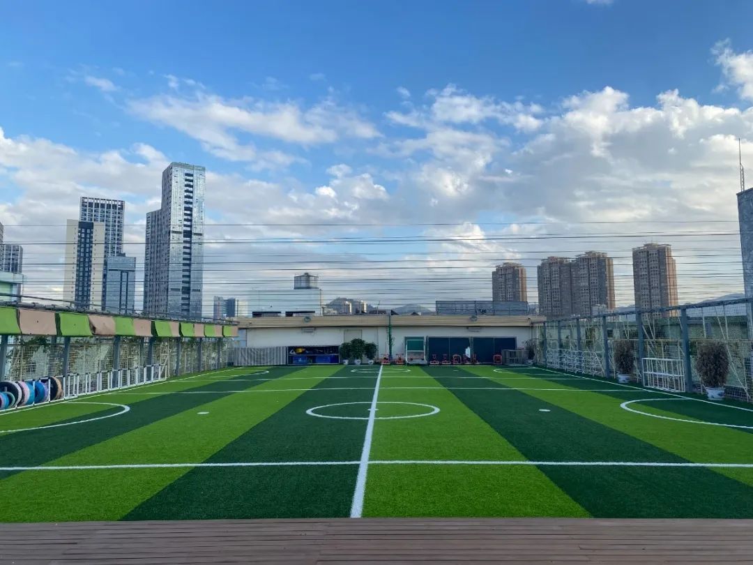 幼儿园位于上南大街上南工业区第八栋(毗邻107创智园)。园舍占地面积1943平方米,建筑面积3000平方米,园所设计温馨童趣,室内建设有多功能大舞台、音体活动室、创意美术活动室、图书室、大型建构游戏室;户外活动场地宽敞,设有幼儿足球场、篮球场、戏水区、玩沙区、小型泳池、大型攀爬玩具等促进幼儿综合体能发展的各类体育、游戏设施,还设置了微观养殖区、种植园地等,是孩子生活、探索、发展的理想乐园。