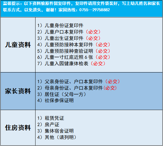 备注:享受国家、广东省和深圳市政策优待人员的适龄子女,需持有相关政策优待材料。