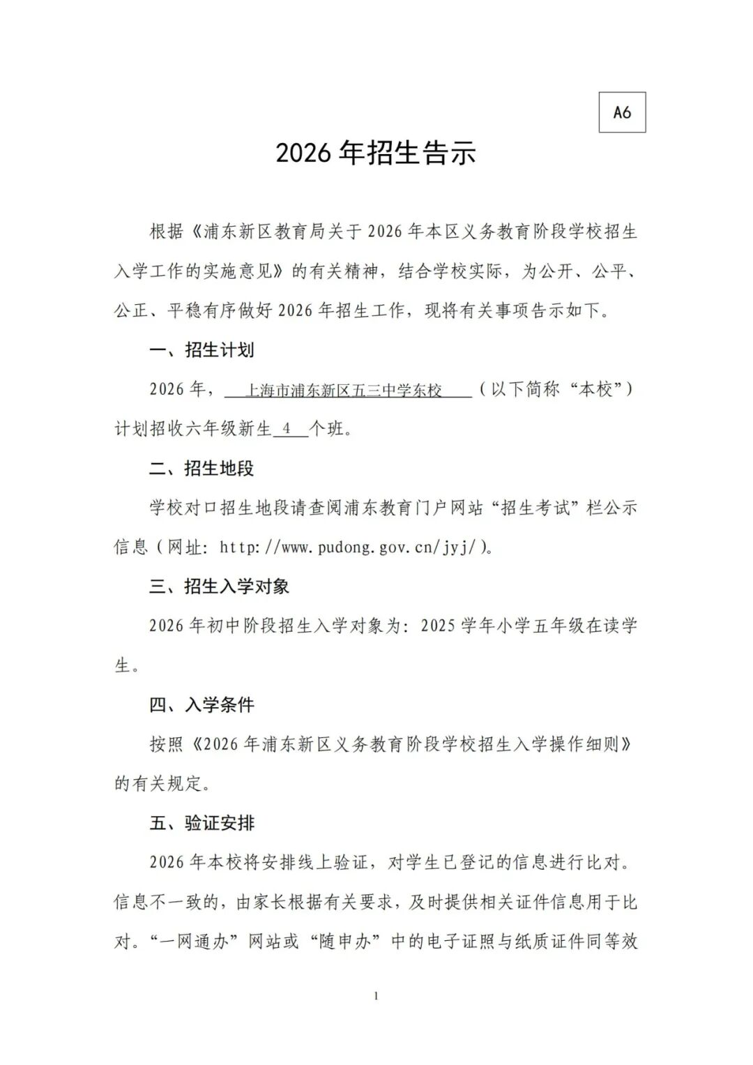 上海市浦东新区五三中学东校