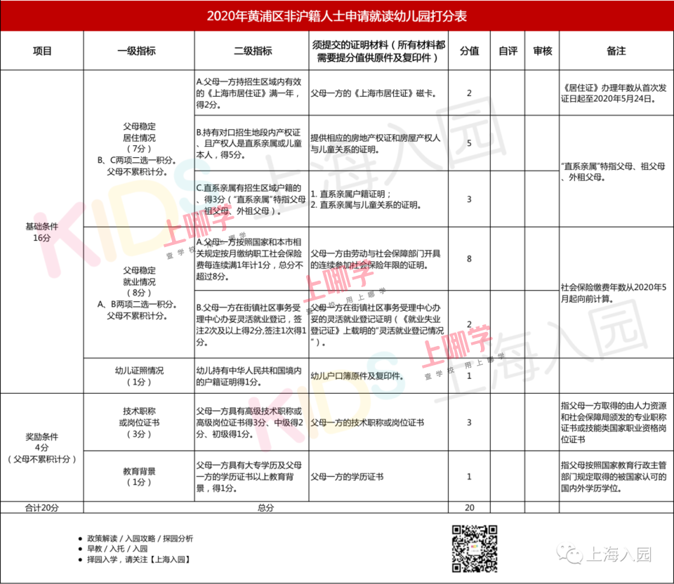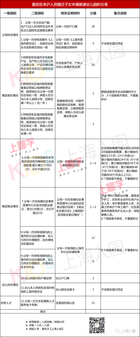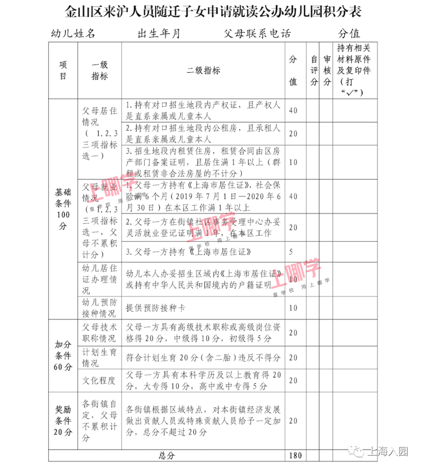 注意!2020上海入园要求非沪籍按“打分表”入学!积分达标也要打分!