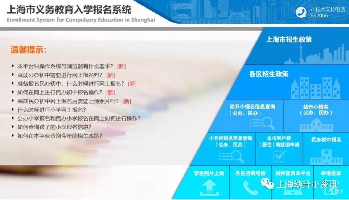 2019年“入学报名系统”于2019年3月18日向社会开放,上海家长可以通过上哪学公众号 菜单栏——升学工具——义务教育报名系统进入页面