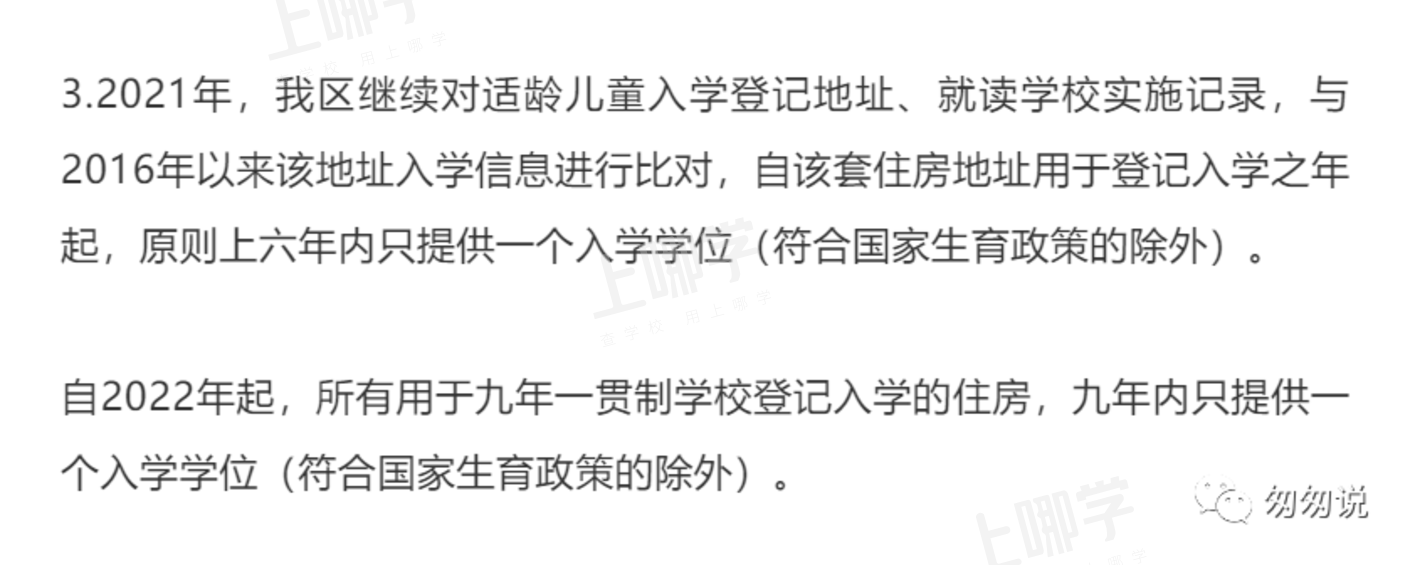 这一条,海淀卡的比较严,实际上是如果你买了学位占用的房子,京籍最多算无房(顺位在1911后买房有学位的后面),非京直接就没有入学资格了。《六年一学位被占用了!!!!》9年这个说的是如果你用了这个房子进了9年的小学,那么9年后才能有学位,京籍买了这样被占用的,就是算有户口无房子,非京就是没有入学资格,所以海淀买之前一定要查学位占用《海淀学区房六年一学位开放网上查询了》。这样海淀的房子就不能入了学就卖了。因为接盘的少了。