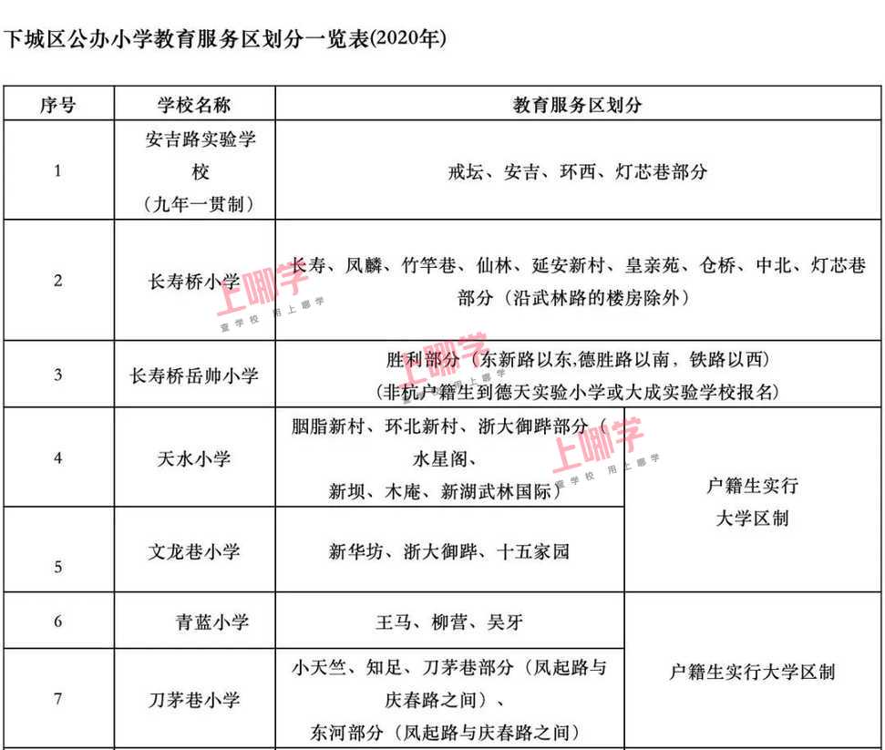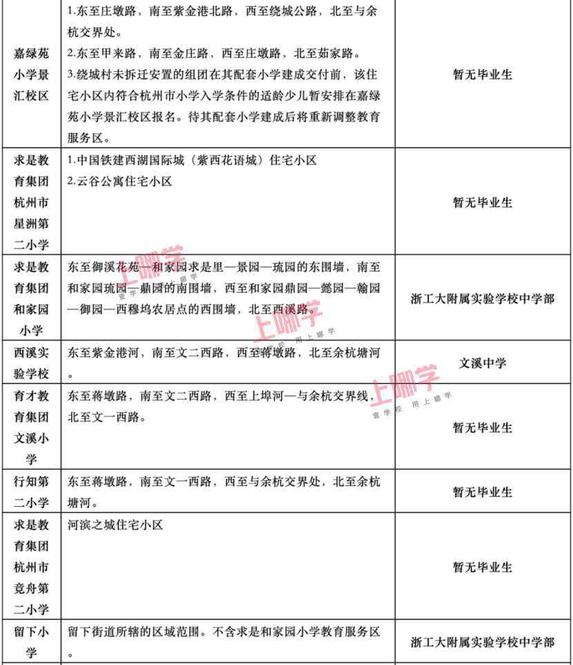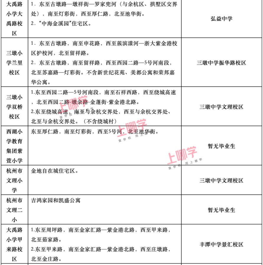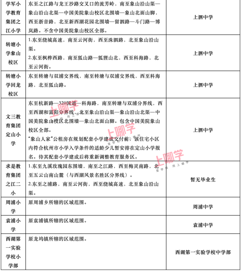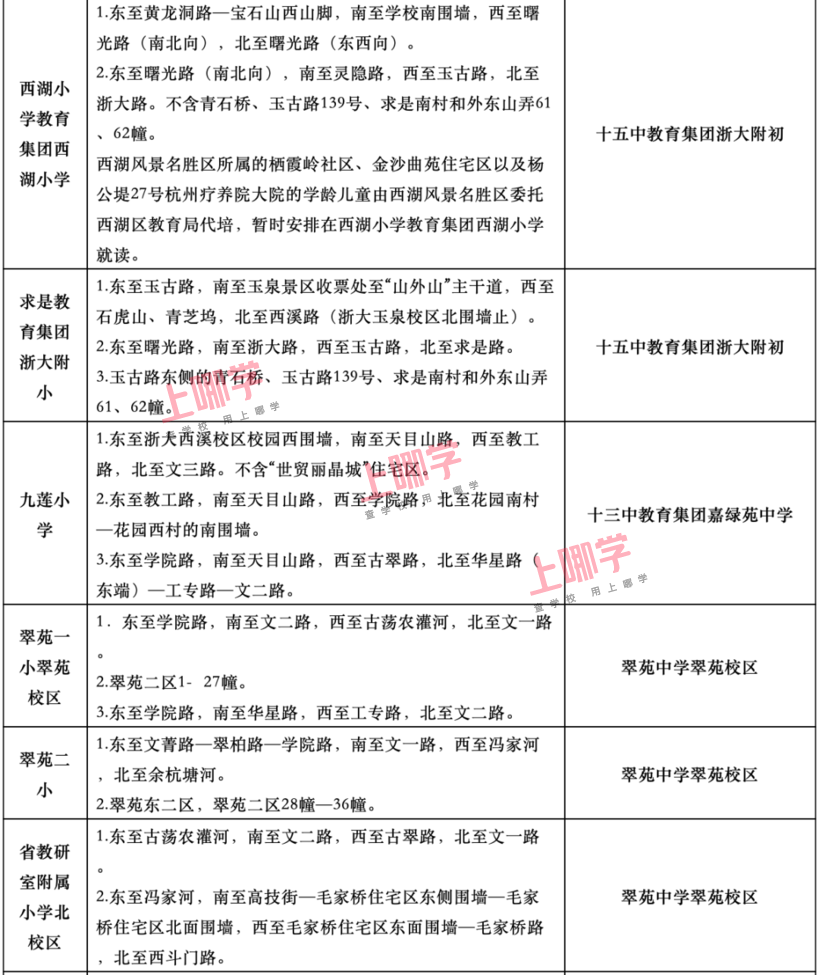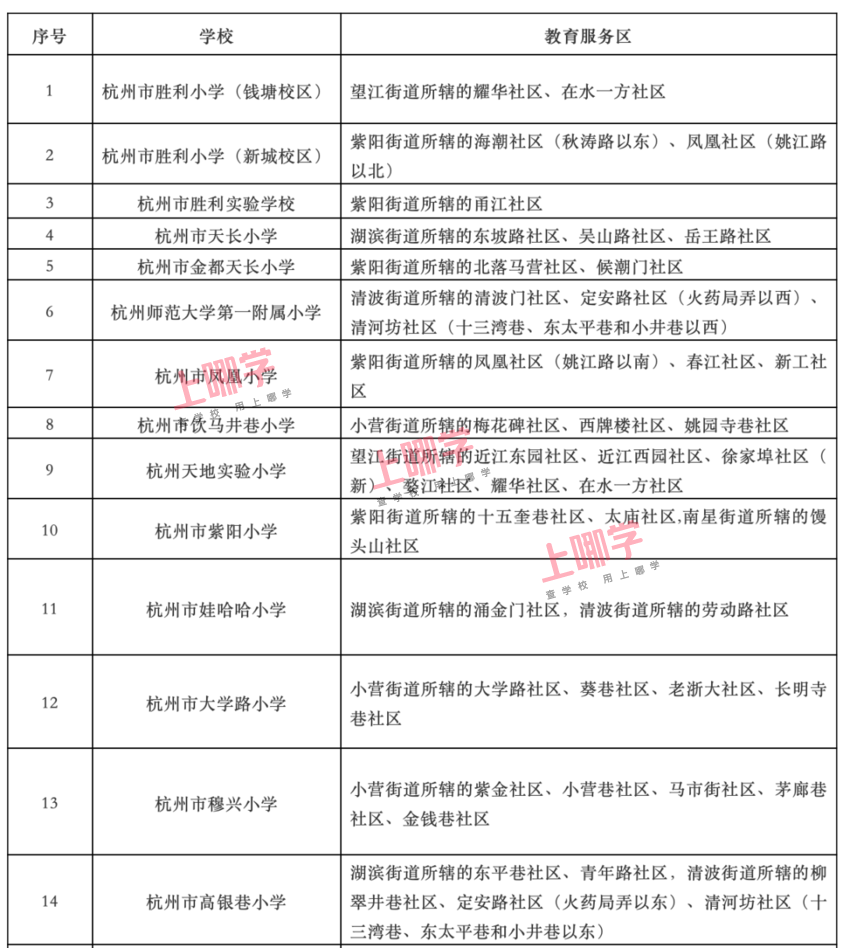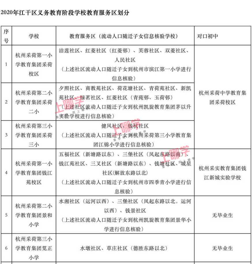 杭州市教育局早前公布了部分区、县(市)2020年各公办中小学教育服务区(学区)范围。