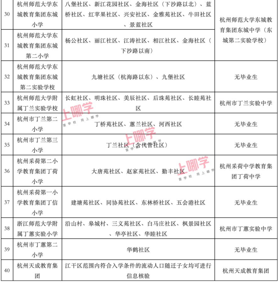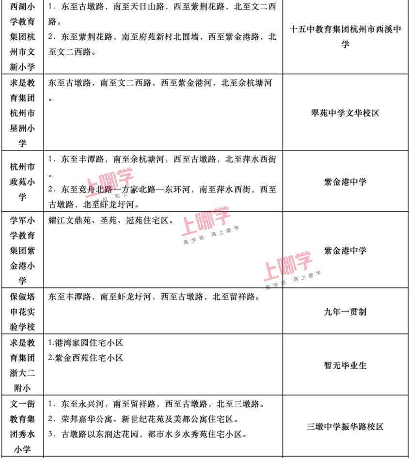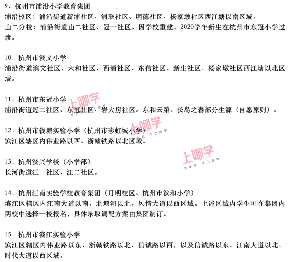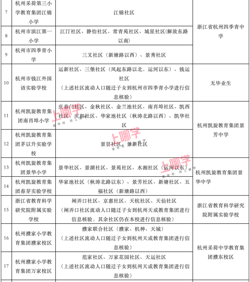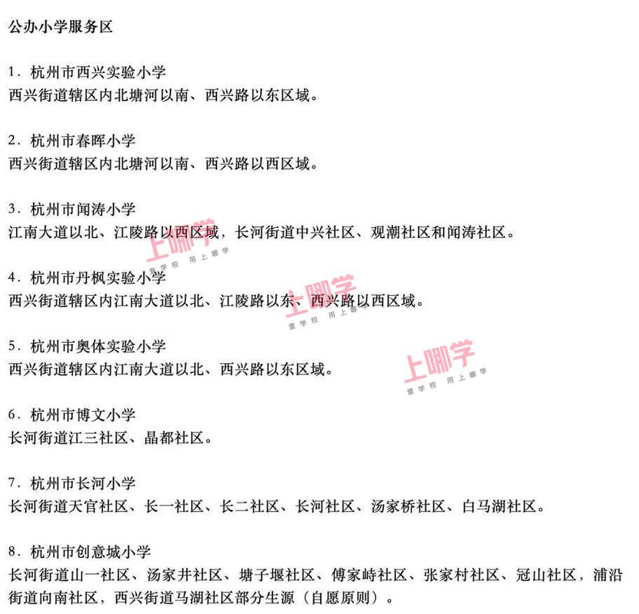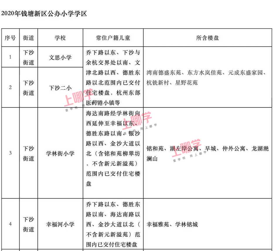 杭州市教育局早前公布了部分区、县(市)2020年各公办中小学教育服务区(学区)范围。