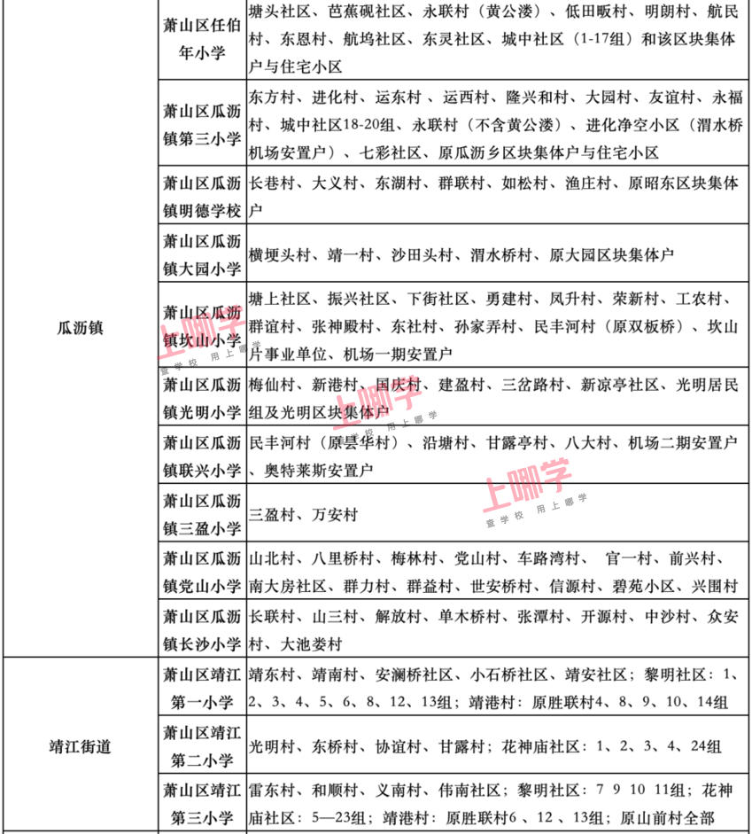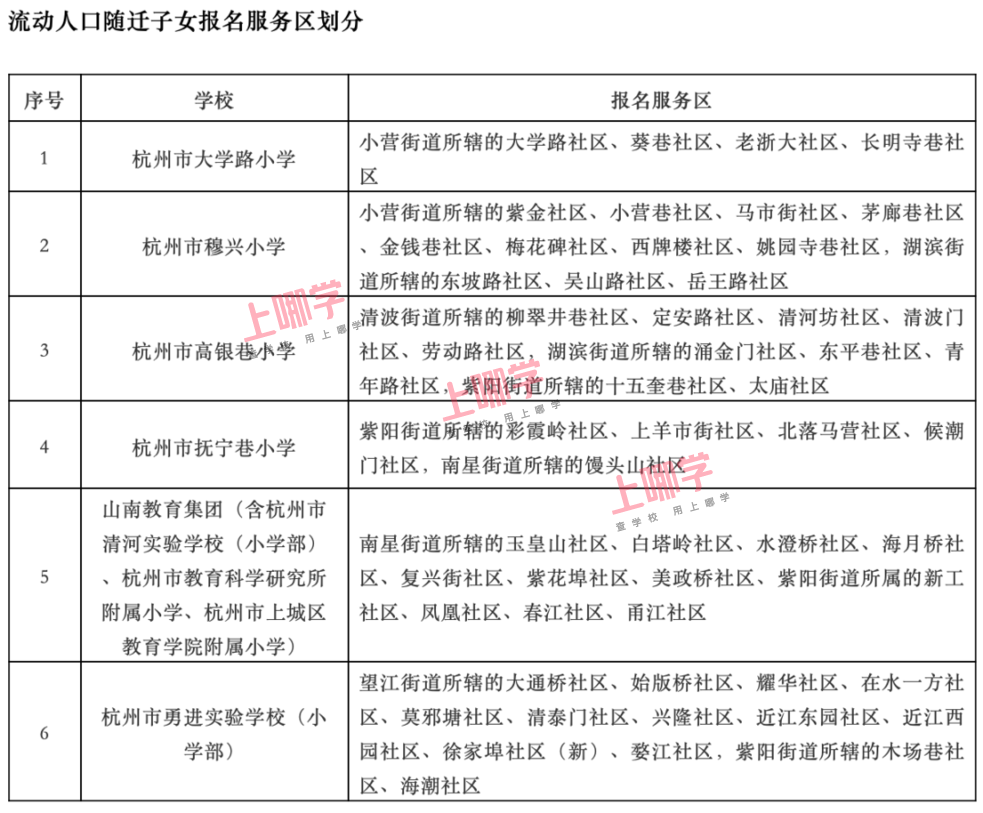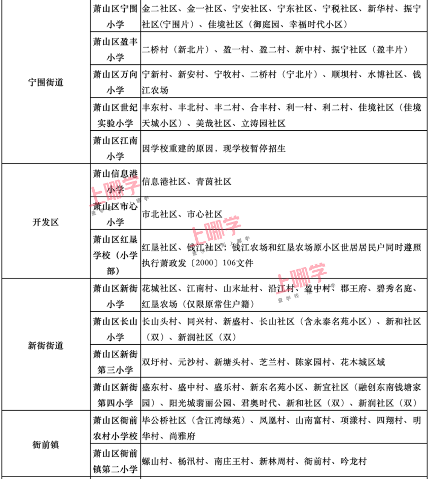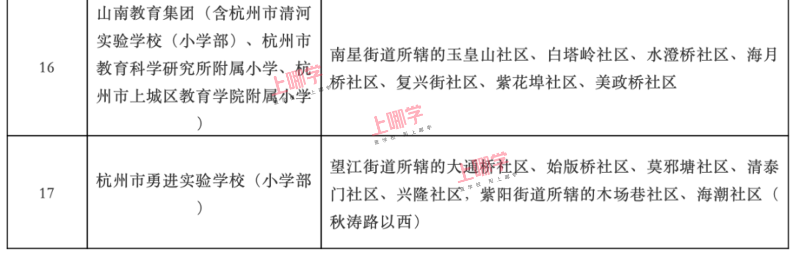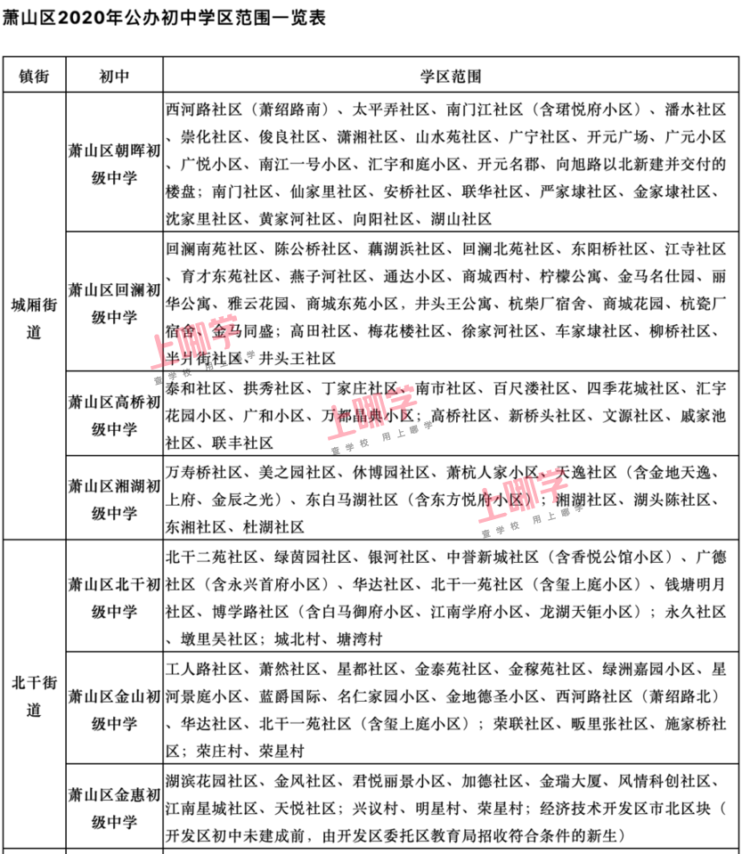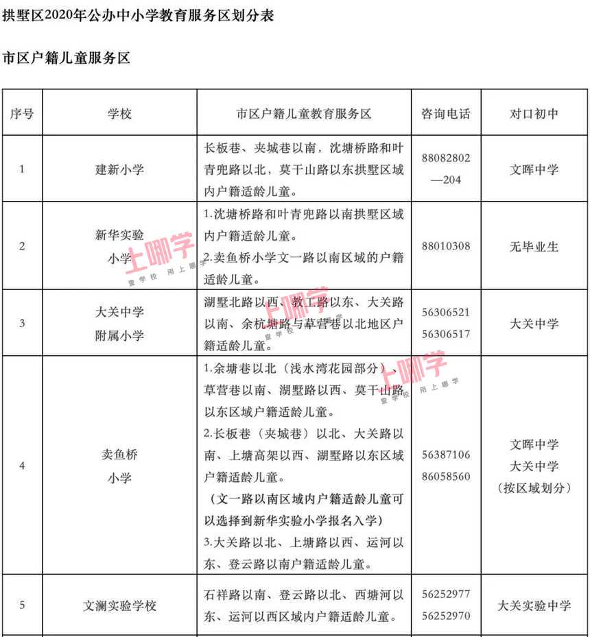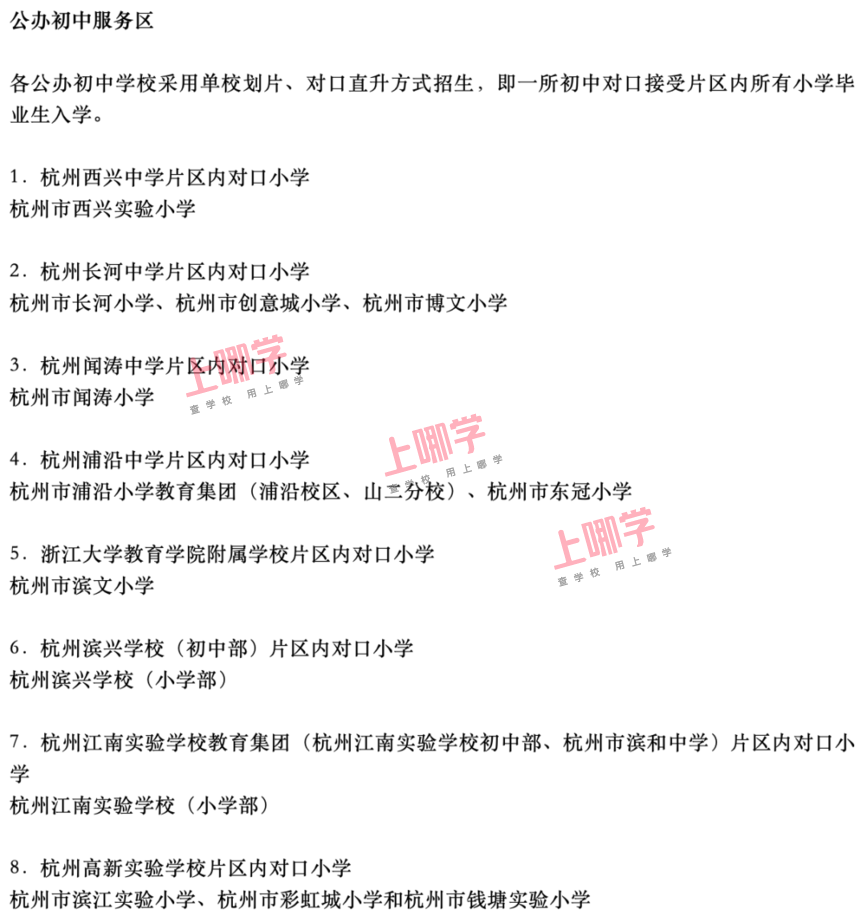 杭州市教育局早前公布了部分区、县(市)2020年各公办中小学教育服务区(学区)范围。