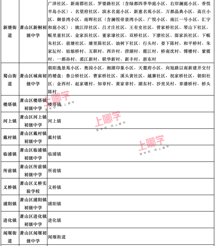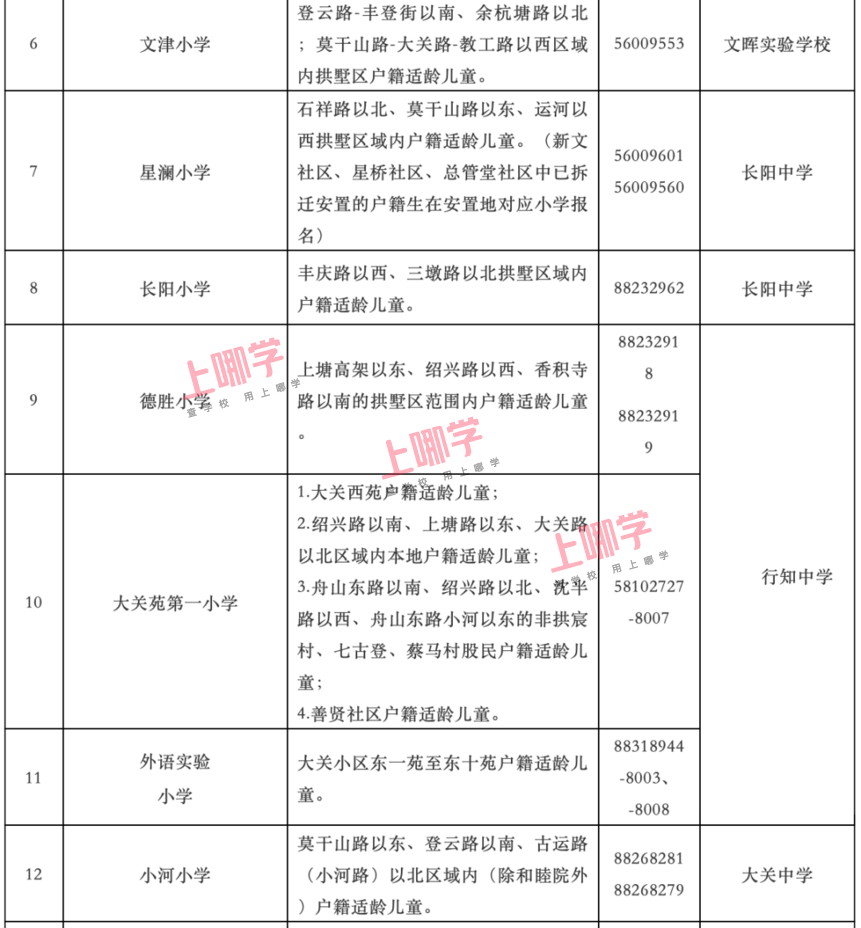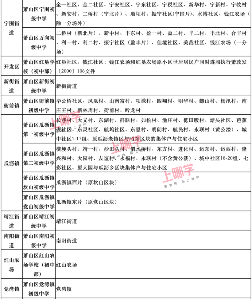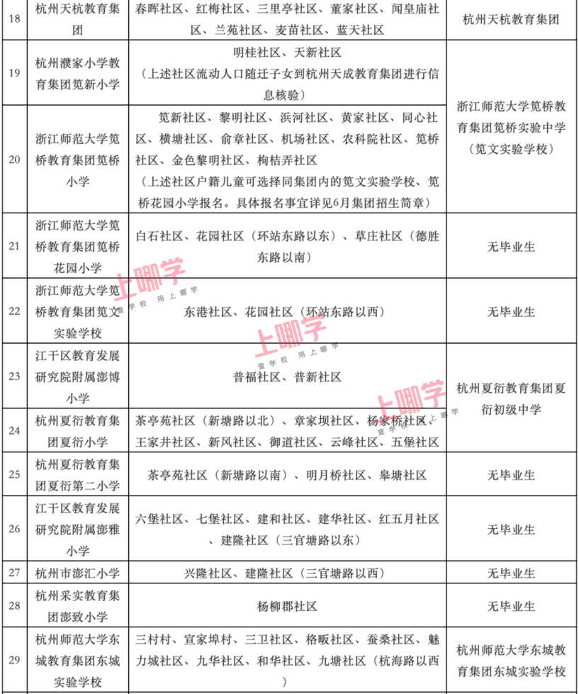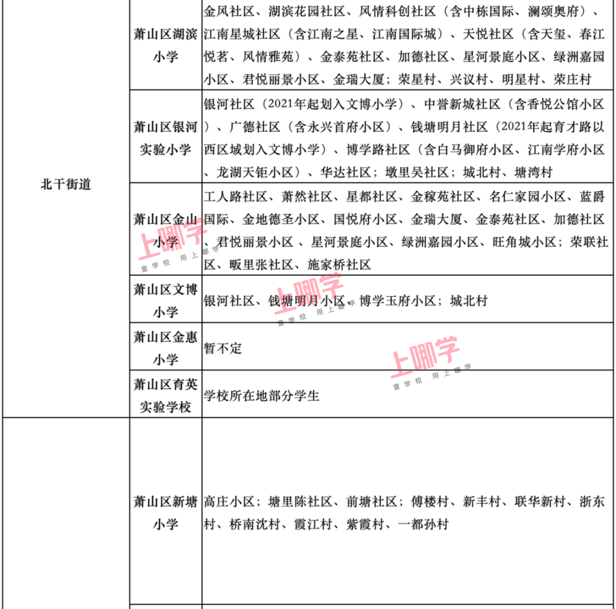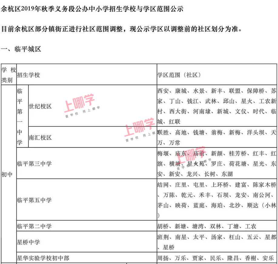杭州市教育局早前公布了部分区、县(市)2020年各公办中小学教育服务区(学区)范围。