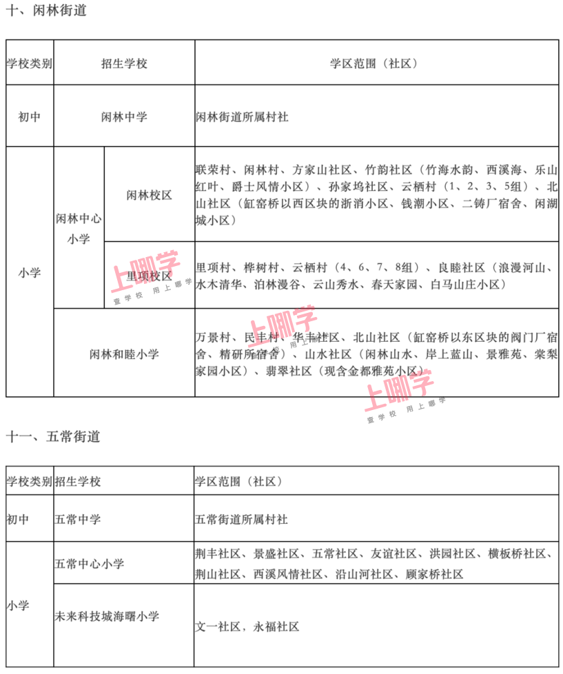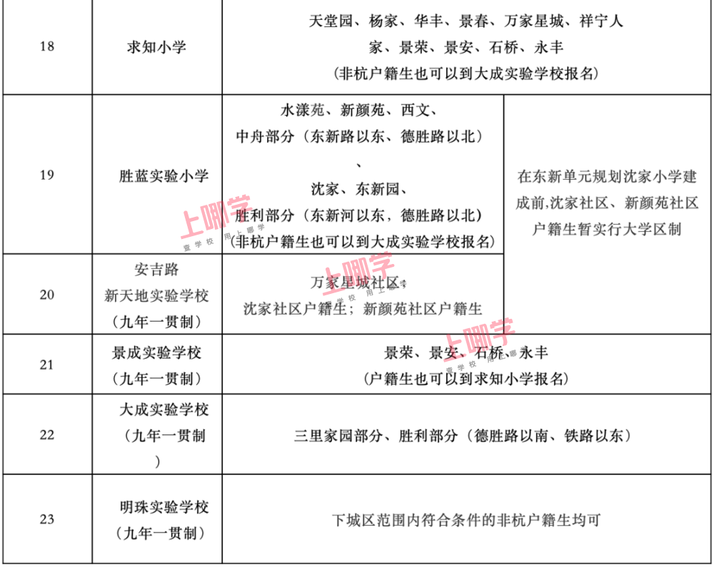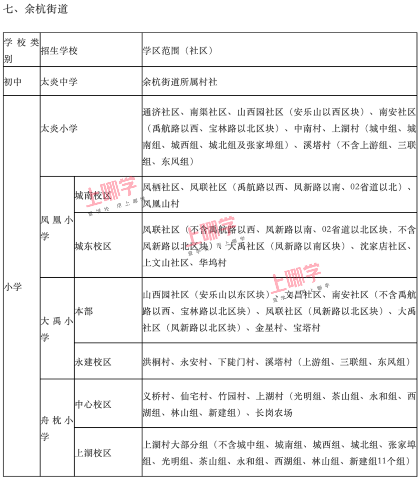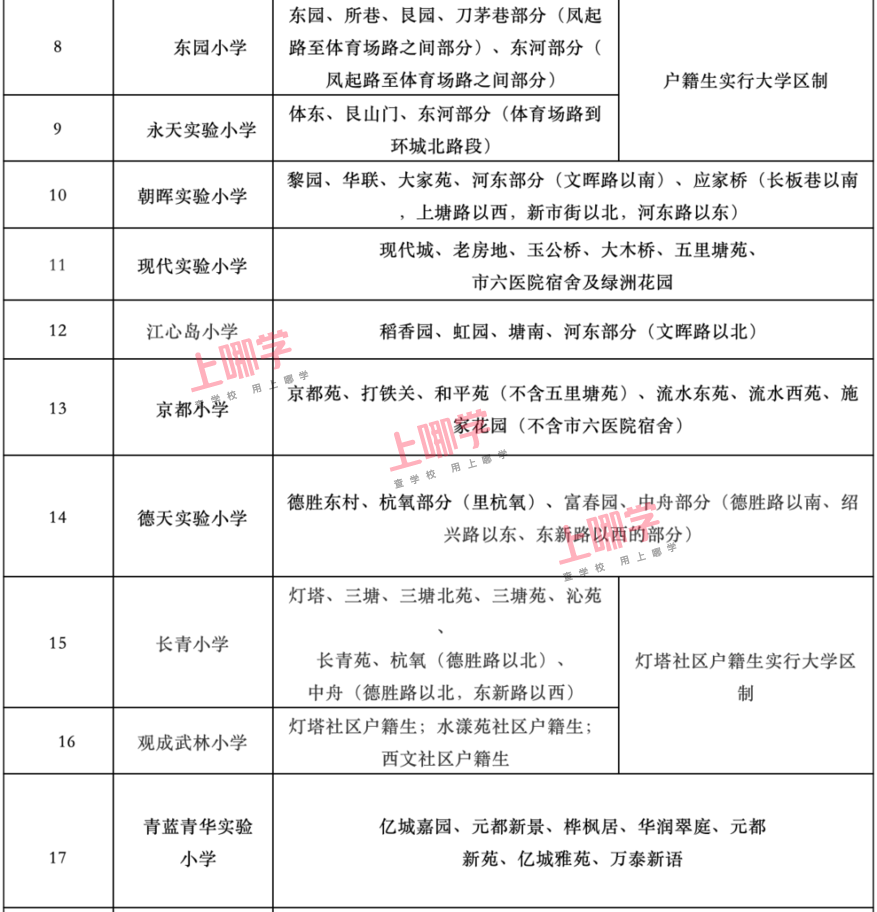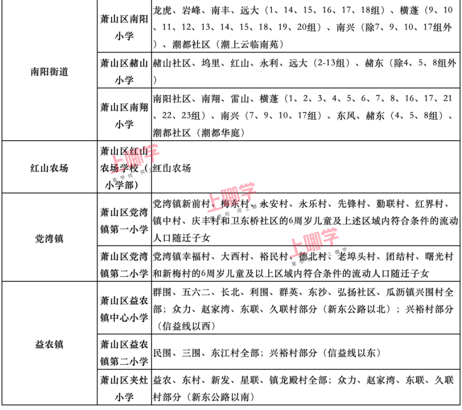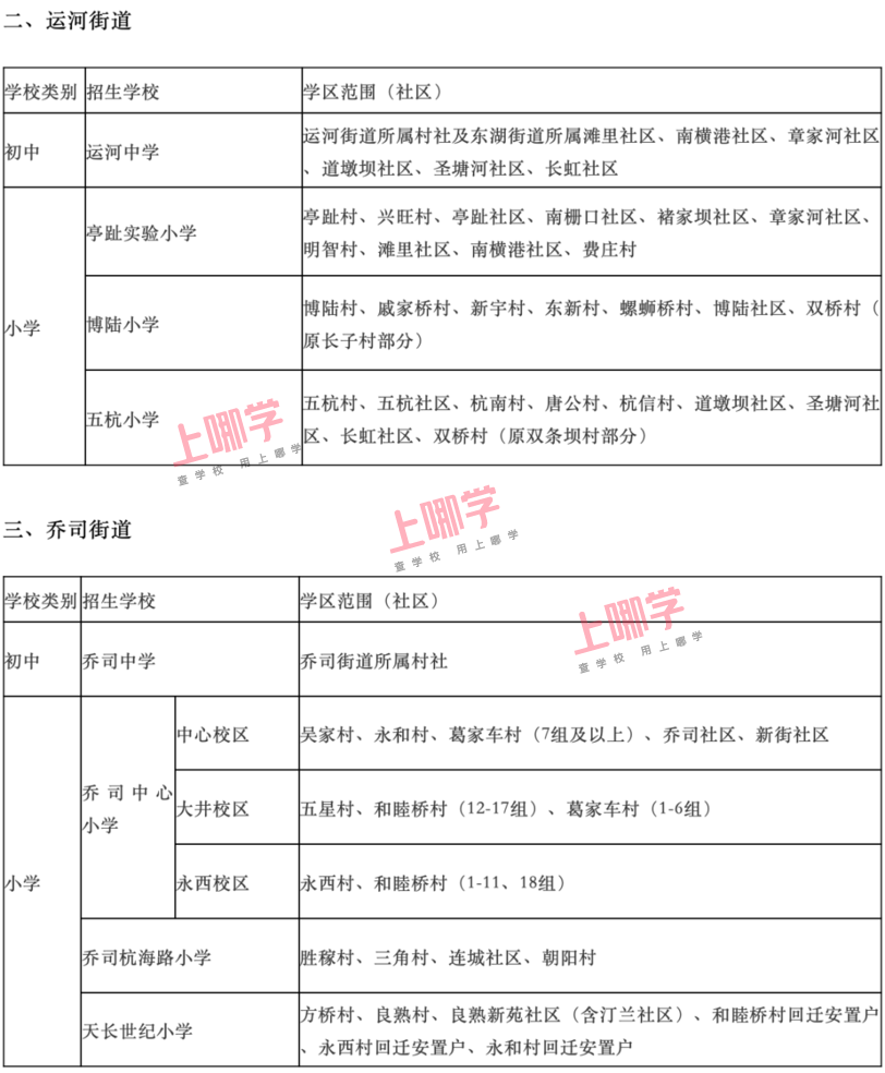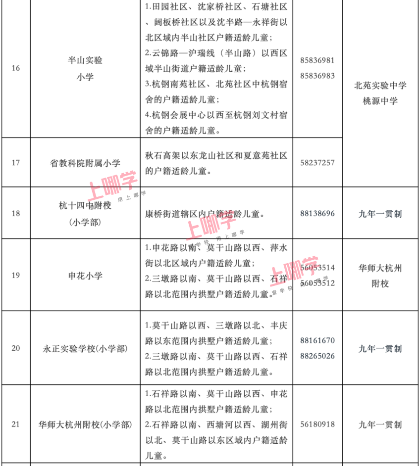 杭州市教育局早前公布了部分区、县(市)2020年各公办中小学教育服务区(学区)范围。