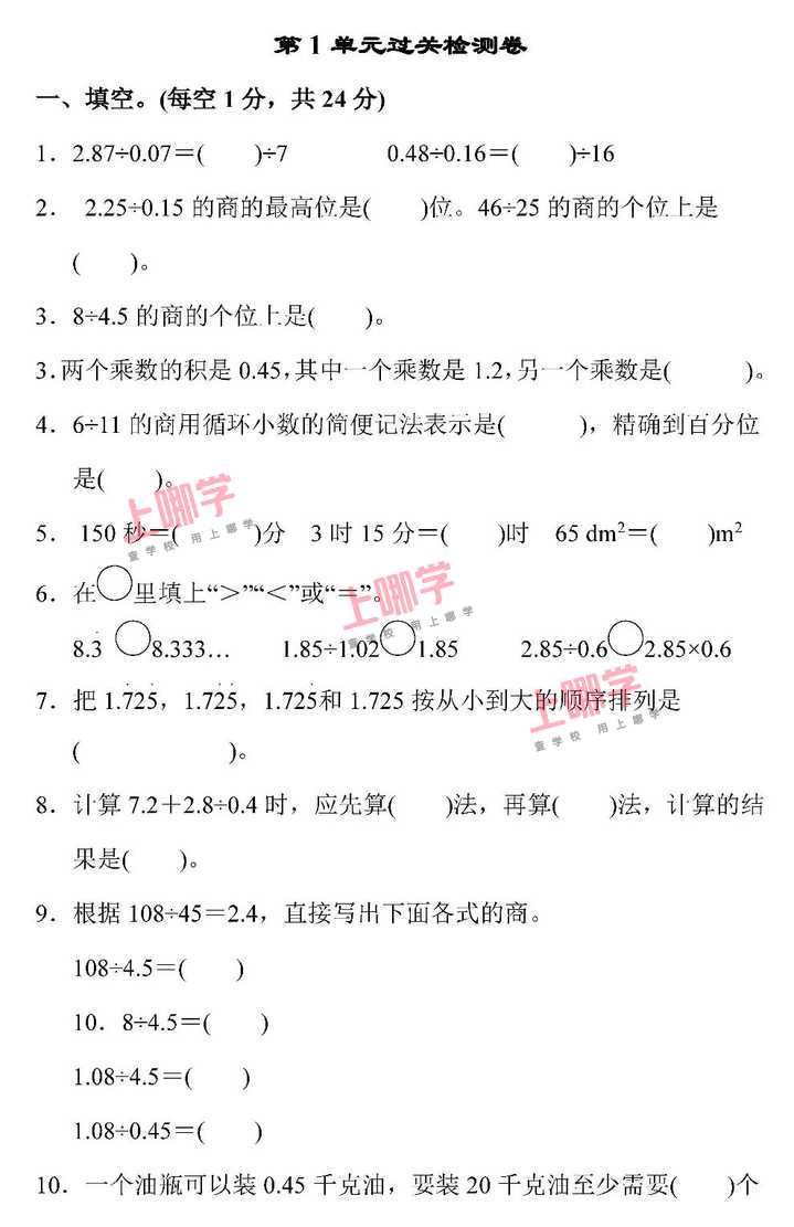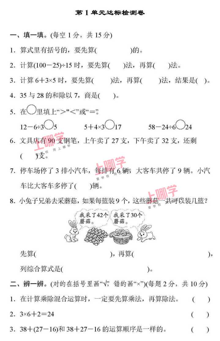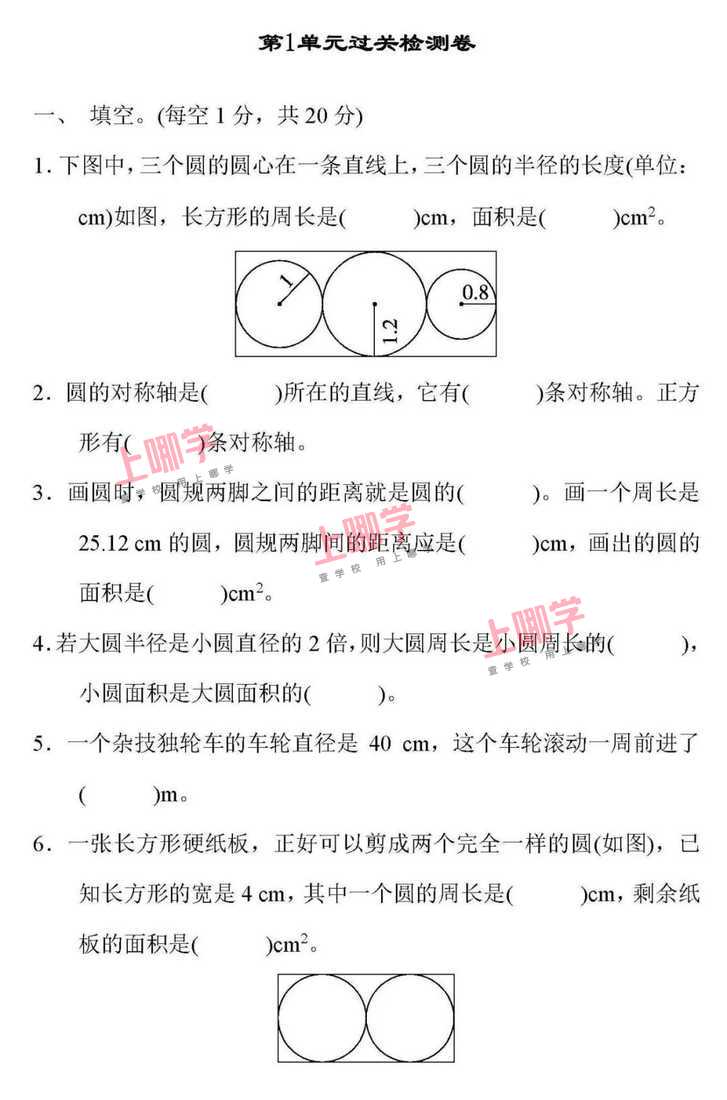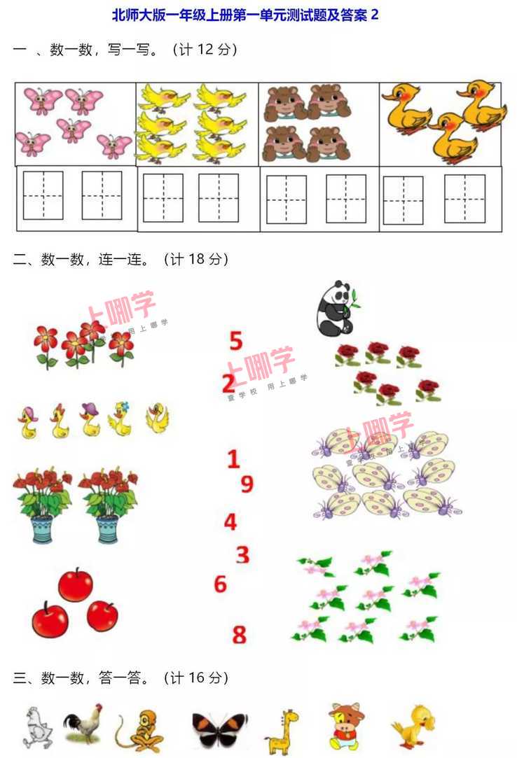 文章-【北师大版达标测试】小学数学1-6年级上册达标测试卷已更新