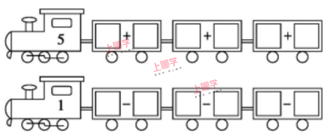 3. 把0、1、2、3、4、5填在□里,每个数只用一次,使算式的得数和车头上的数相等。(12分)