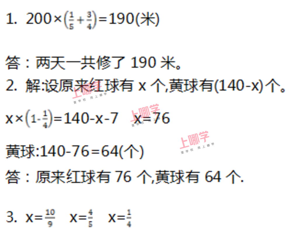 1. 修路队修一条长200米的路,第一天修了这条路的,第二天修了这条路的