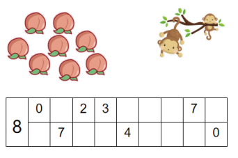 1. 把下面的桃子分给2只猴子,可以怎么分?