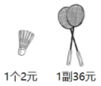 2. 张阿姨带了50元钱,买了一副球拍后,还能再买几个羽毛球?