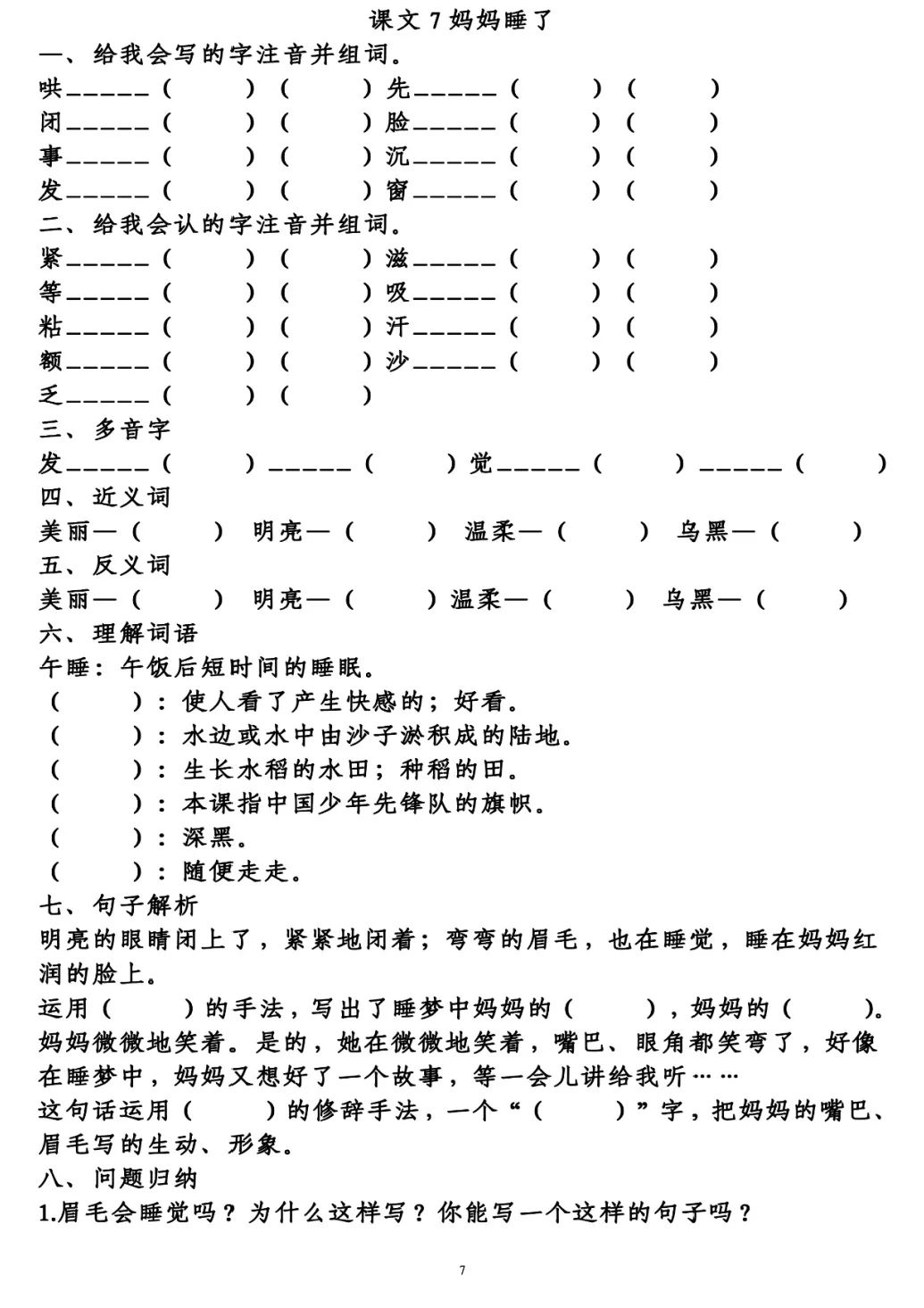 文章-语文1-6年级上册第三单元知识梳理填空(附答案)