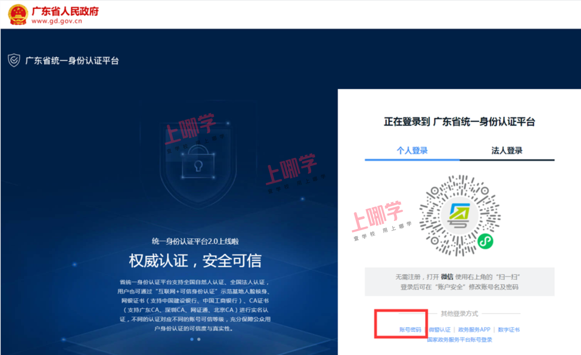 4、选择“个人登录”,点击“账号密码”(不要扫二维码)