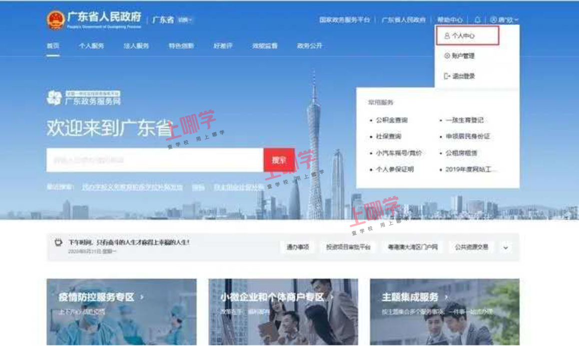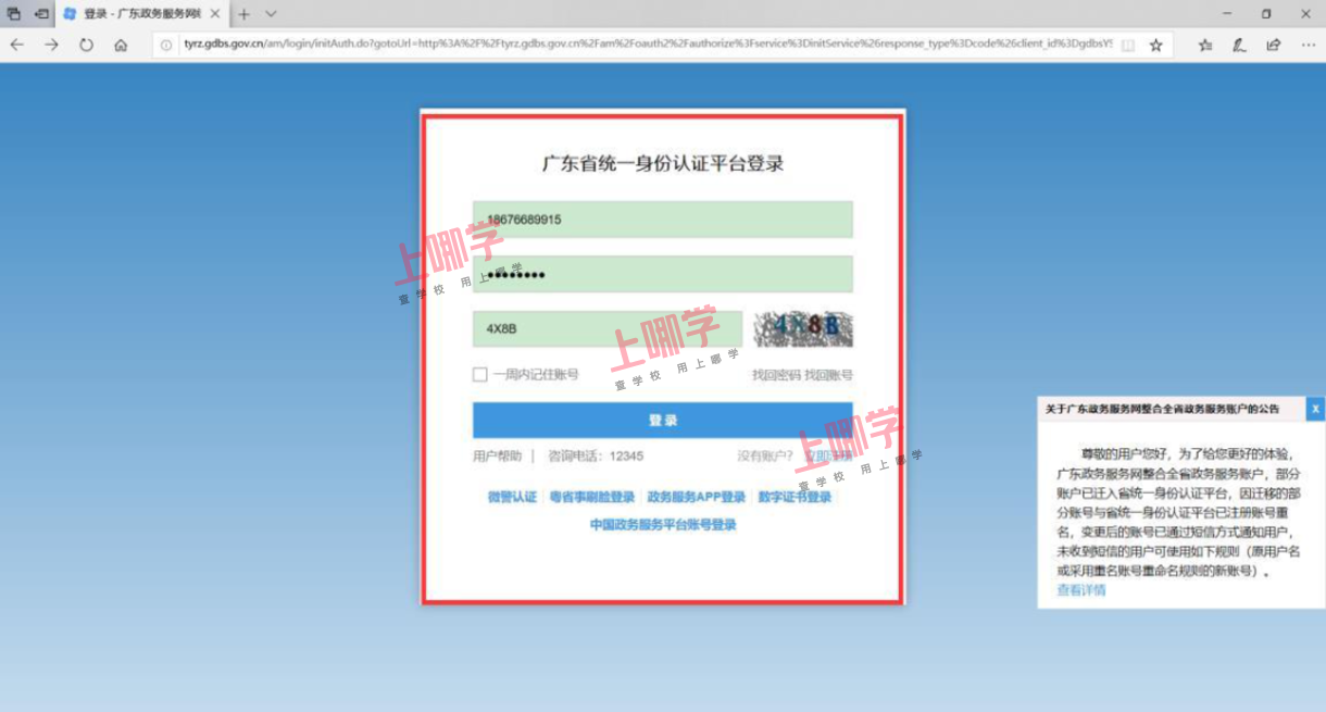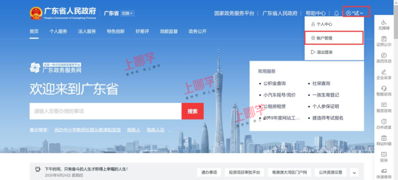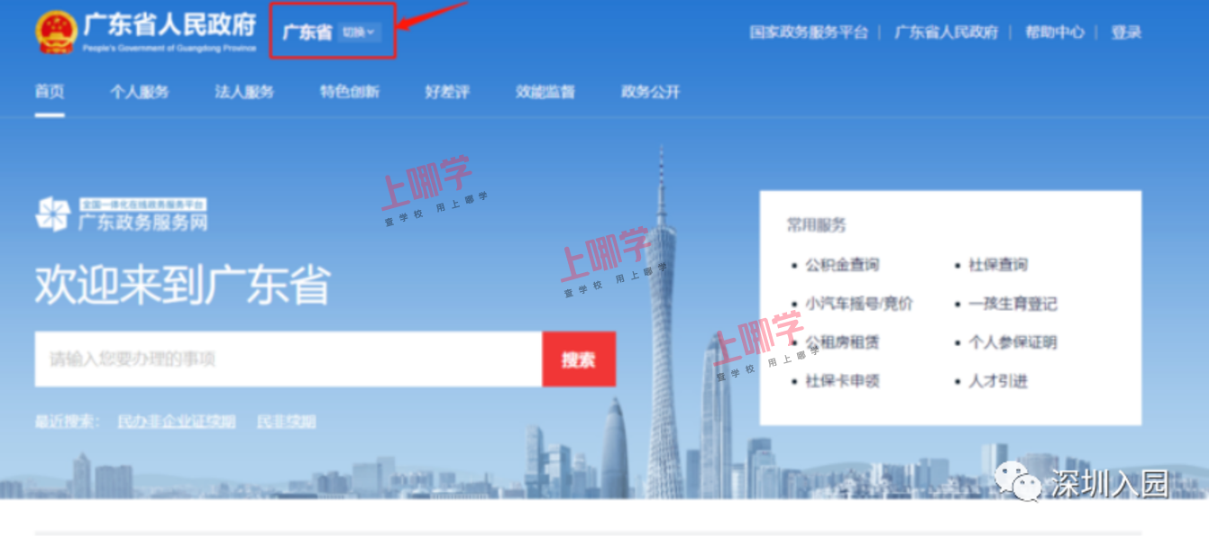 幼儿家长于各区规定时间内登陆“广东省政务服务网”