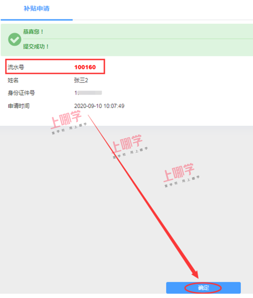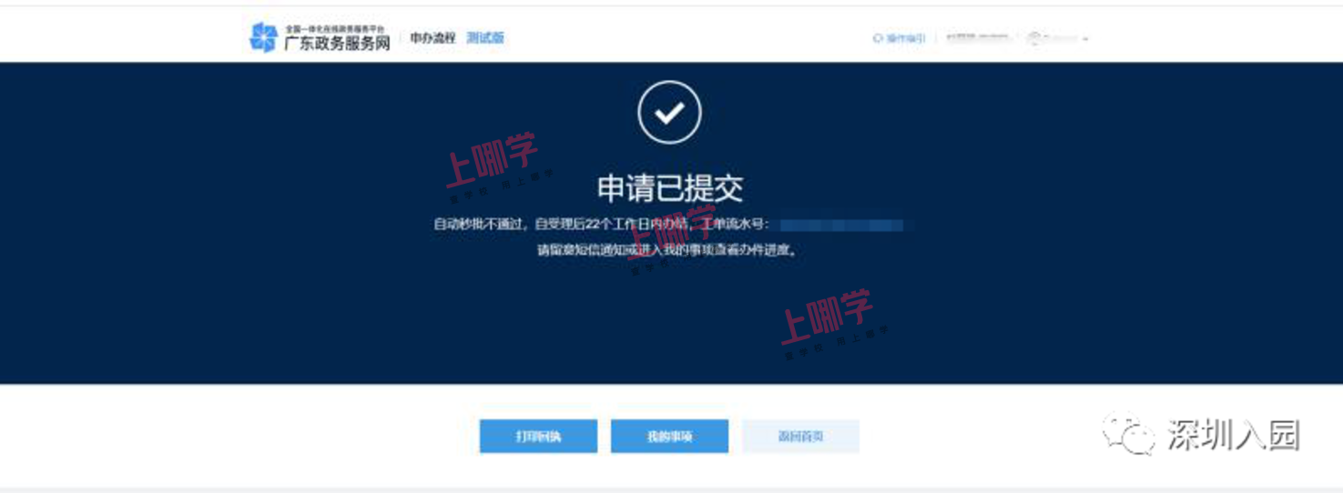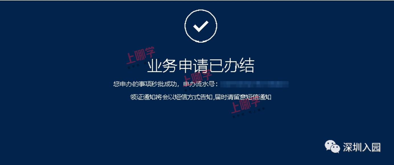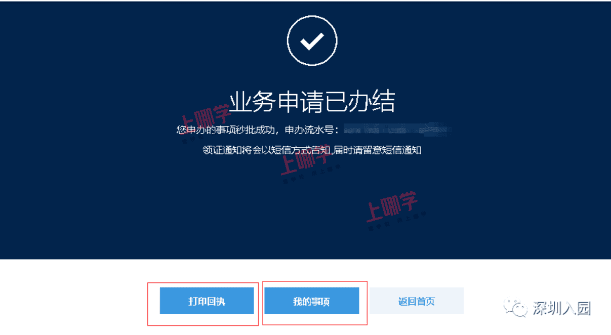 11、完成申办后,会有流水信息提示信息提示