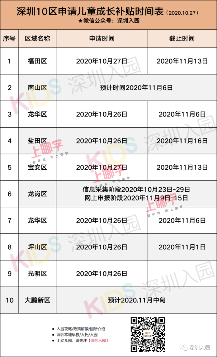- 必须注册孩子信息!2020深圳10区补贴申请时间+流程出炉!