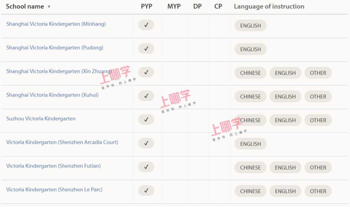 大名鼎鼎的维多利亚幼儿园在上海拥有的4所幼儿园,都获得了IB幼儿园的资格。维多利亚早在2003年就开始践行IB-PYP课程。截止到今天,维多利亚在中国范围内已有8所幼儿园,登上了IBO认证校名单!相当厉害!