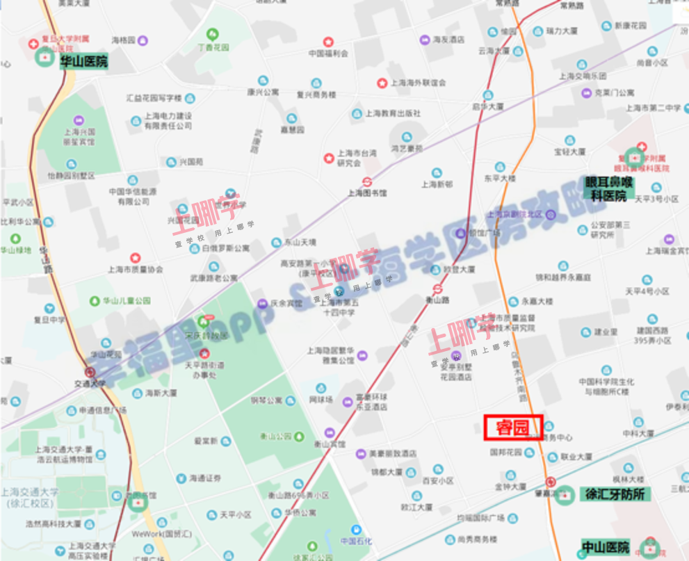 衡山路板块的医疗资源也十分丰富,有三个三甲综合医院——分别为复旦大学附属眼耳鼻喉科医院、中山医院和华山医院。