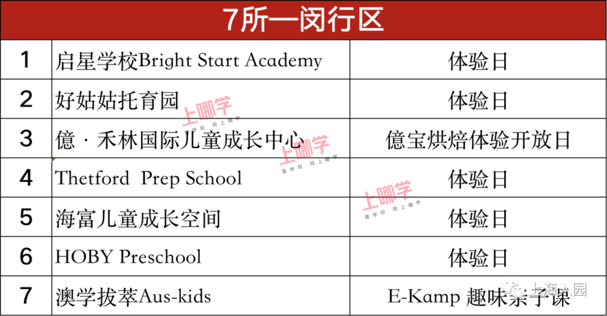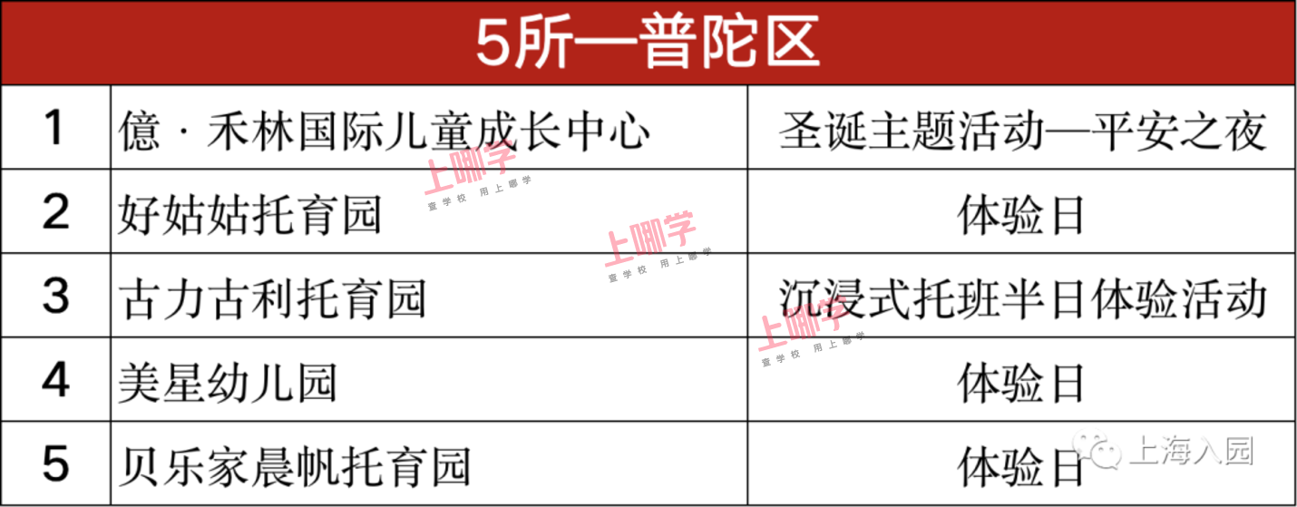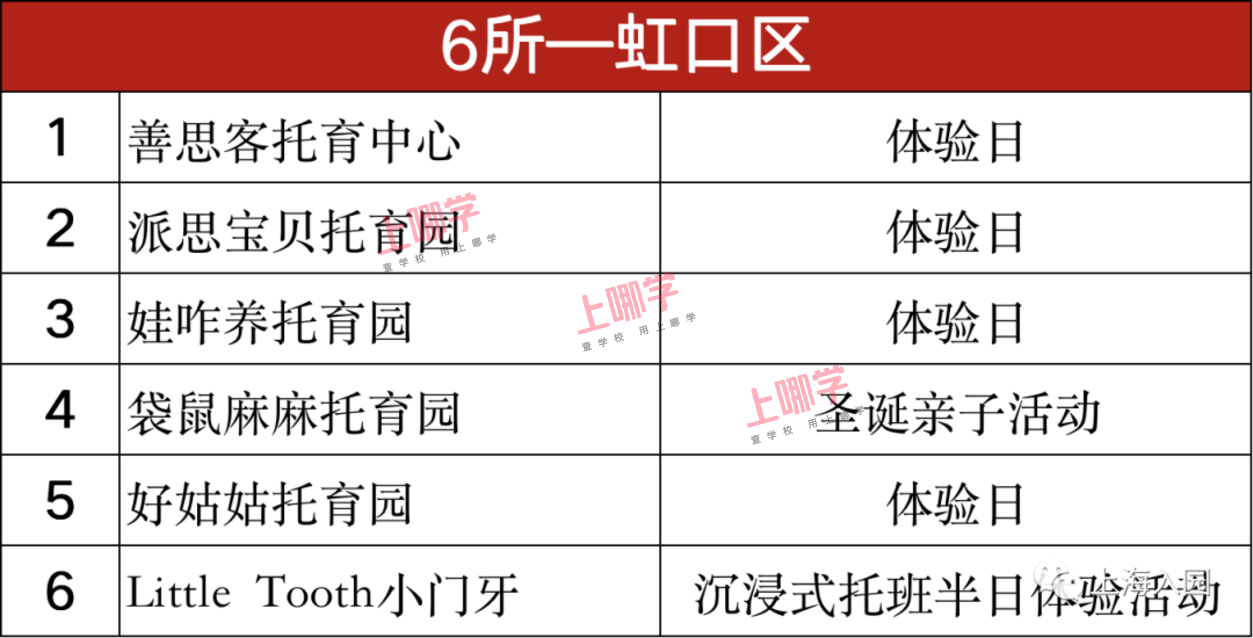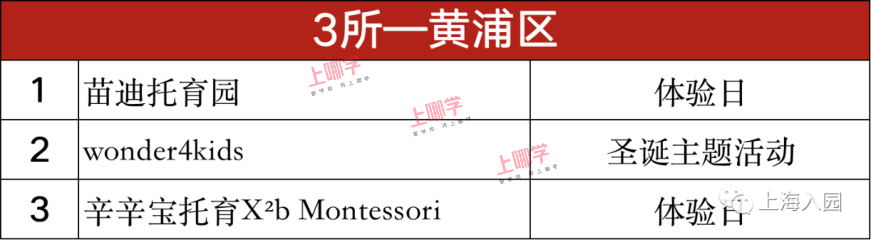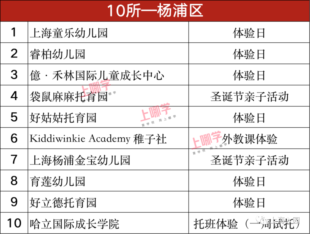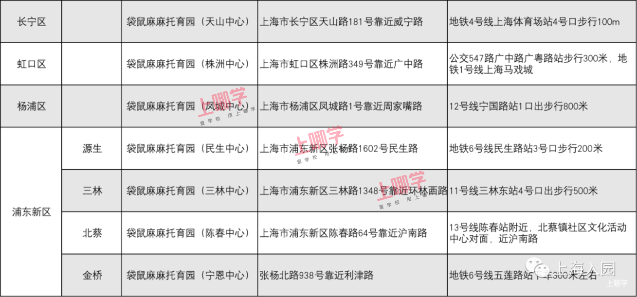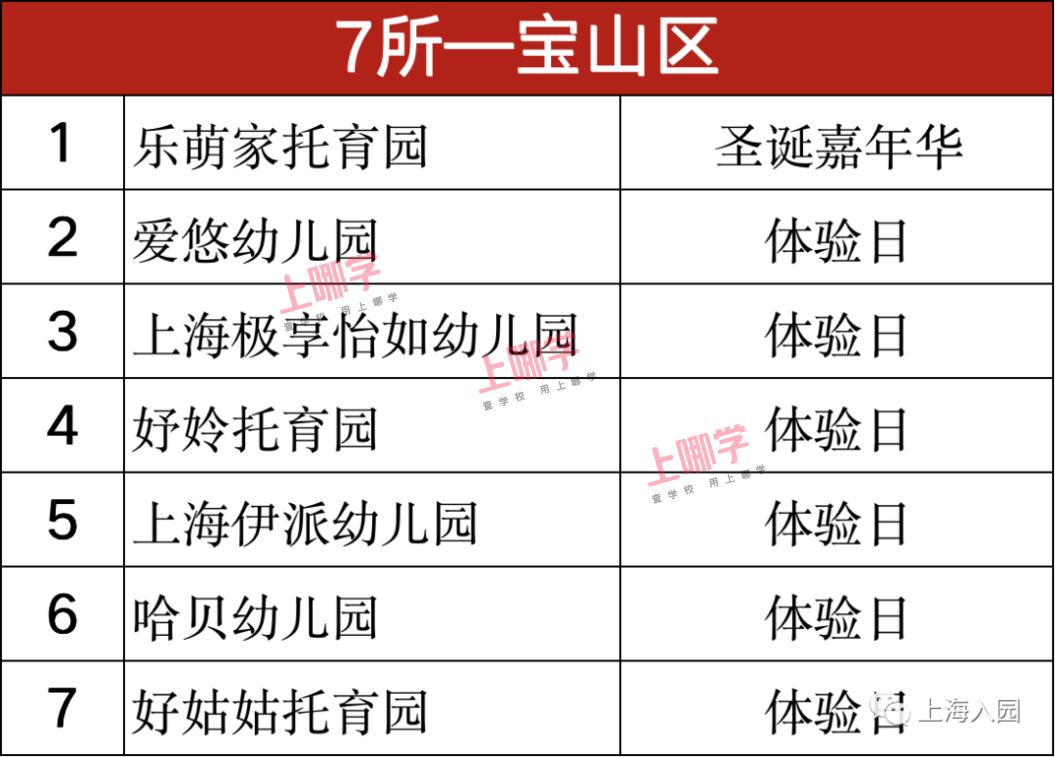 滑动下表,可查看上海区域幼托园,均可免费报名!