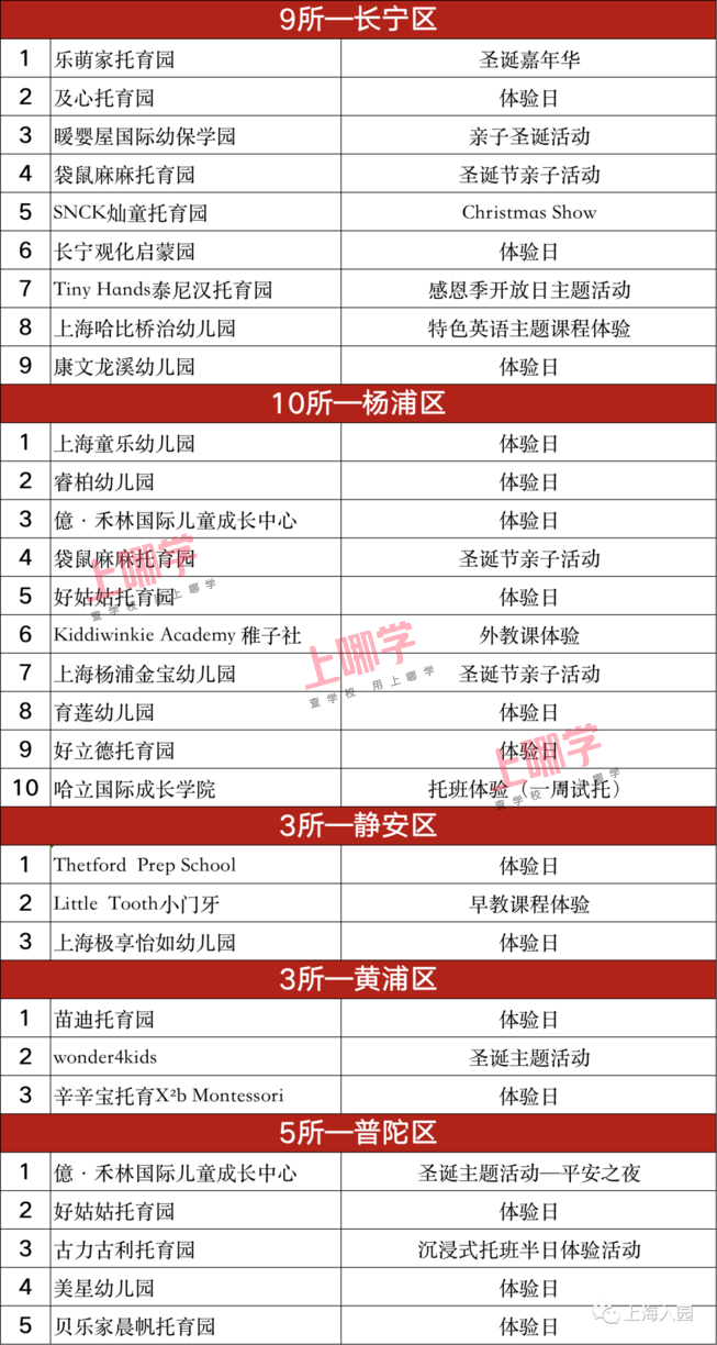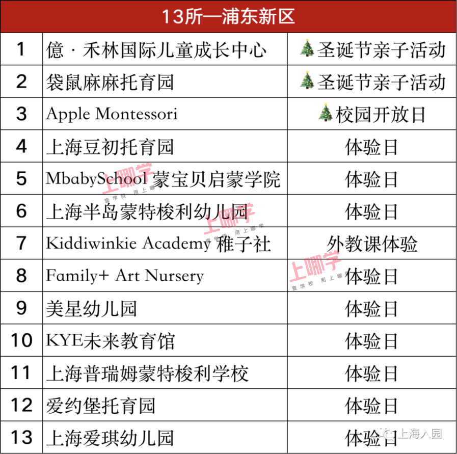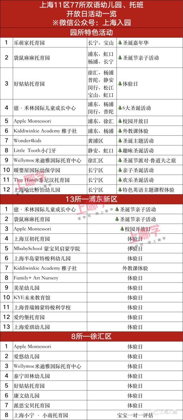 一年一度的圣诞节活动还能报名!让宝贝提前体验园区环境,下面就跟着入园君一起了解这些园所吧~