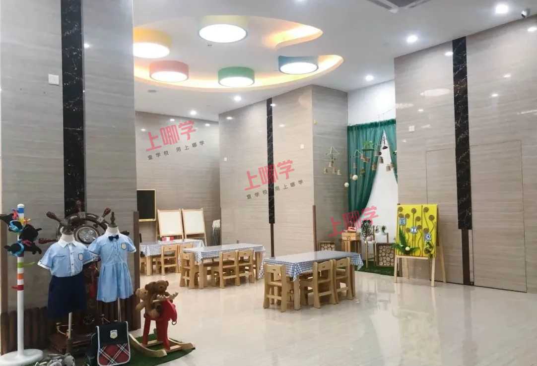 幼儿园设有分享阅读室、创意美工室、多功能音乐室、幼儿游戏室。户外有运动场、篮球场、玩沙池、种植区、拓展训练区、大型玩具游戏区。小朋友会有一周半天外教课堂,其余由中教老师复习巩固。